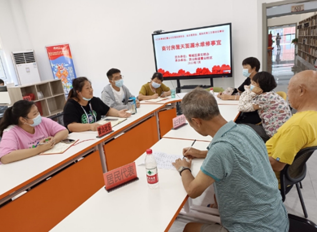 雷山社區(qū)以居民需求為起點(diǎn),以小協(xié)商推動(dòng)大治理,解決居民樓棟天面漏水問題,打造“小區(qū)即景區(qū) 出門即公園 生活即旅游”的幸福社區(qū),讓老舊房變“幸福里”。