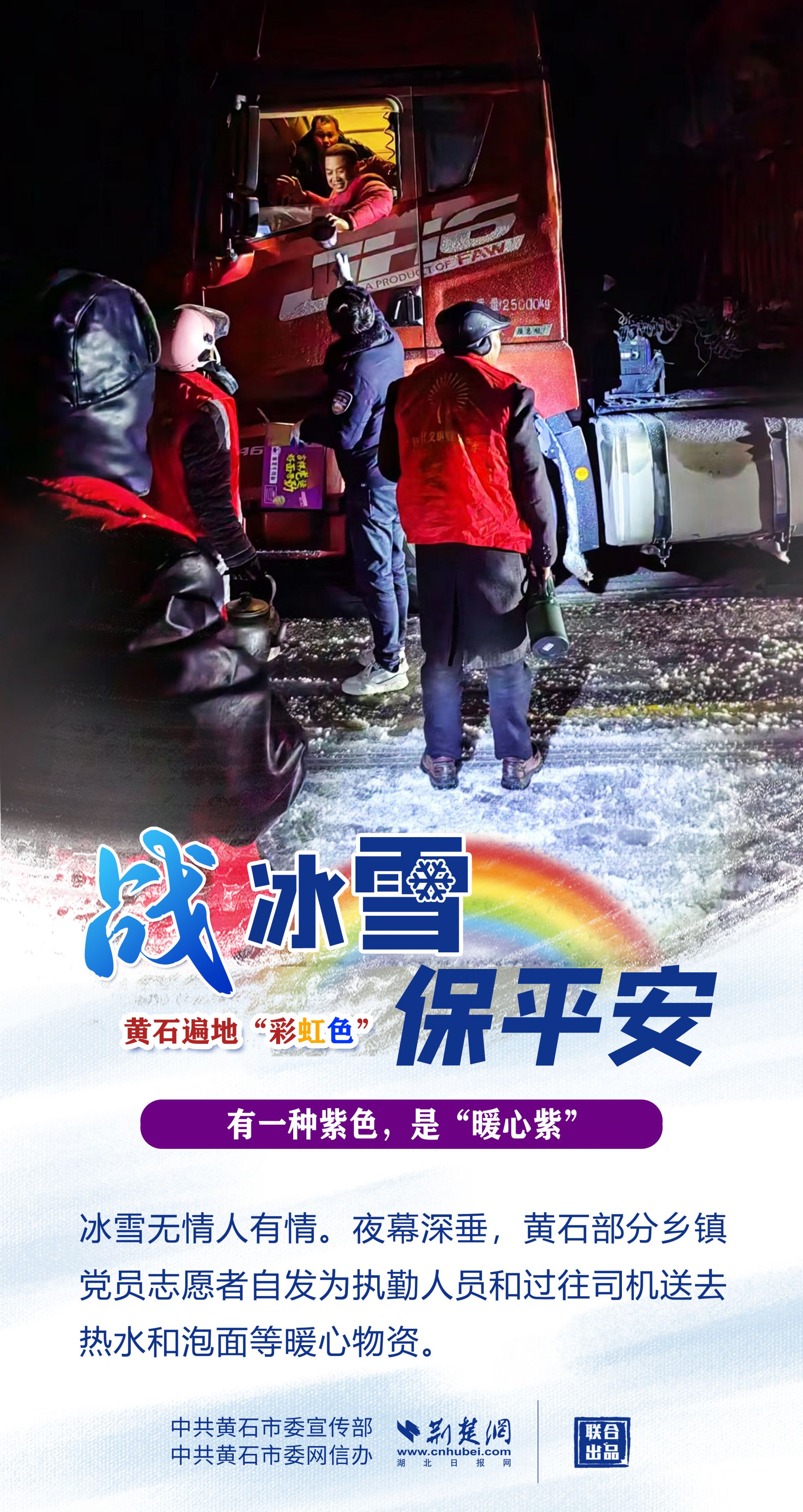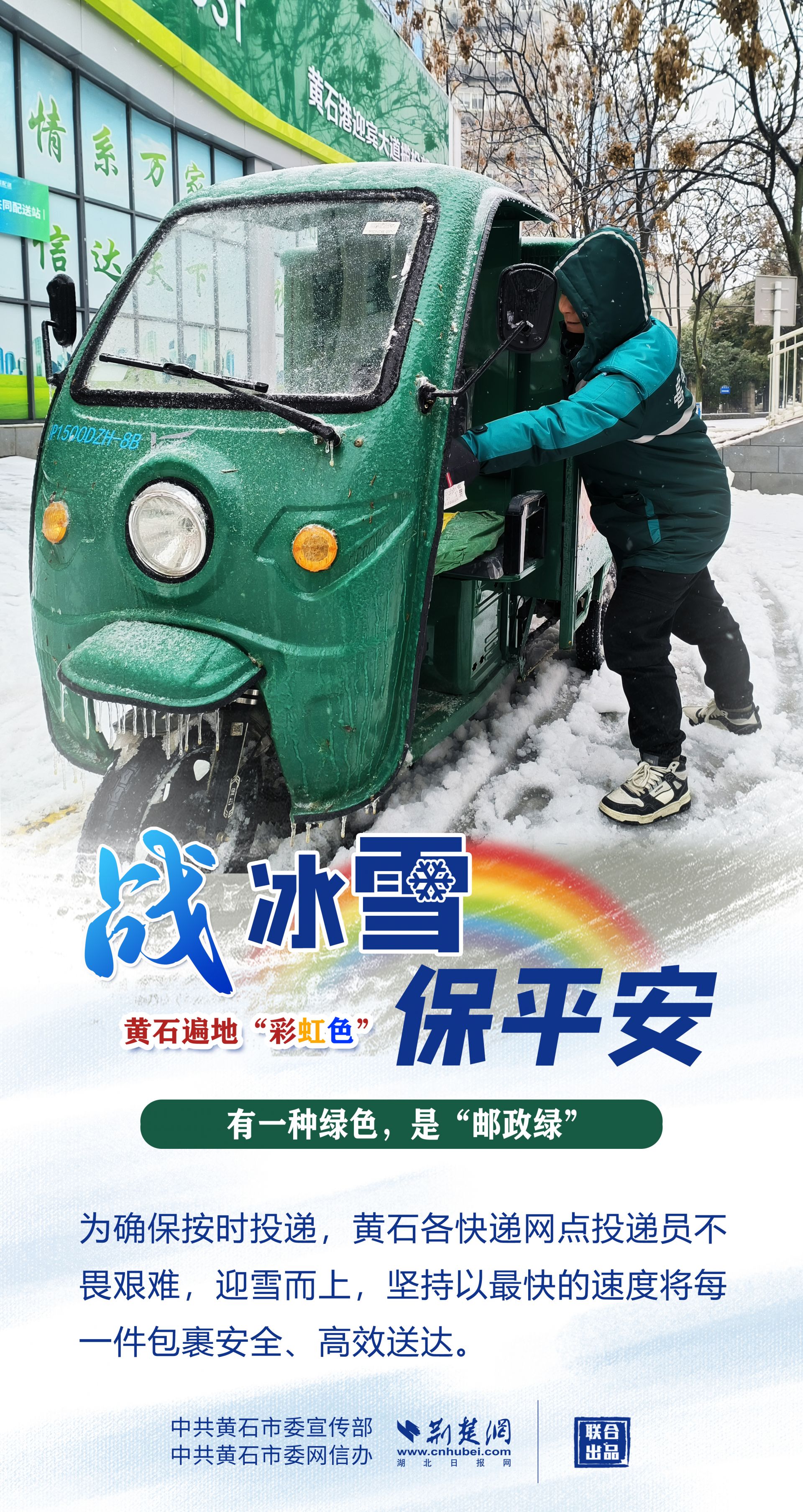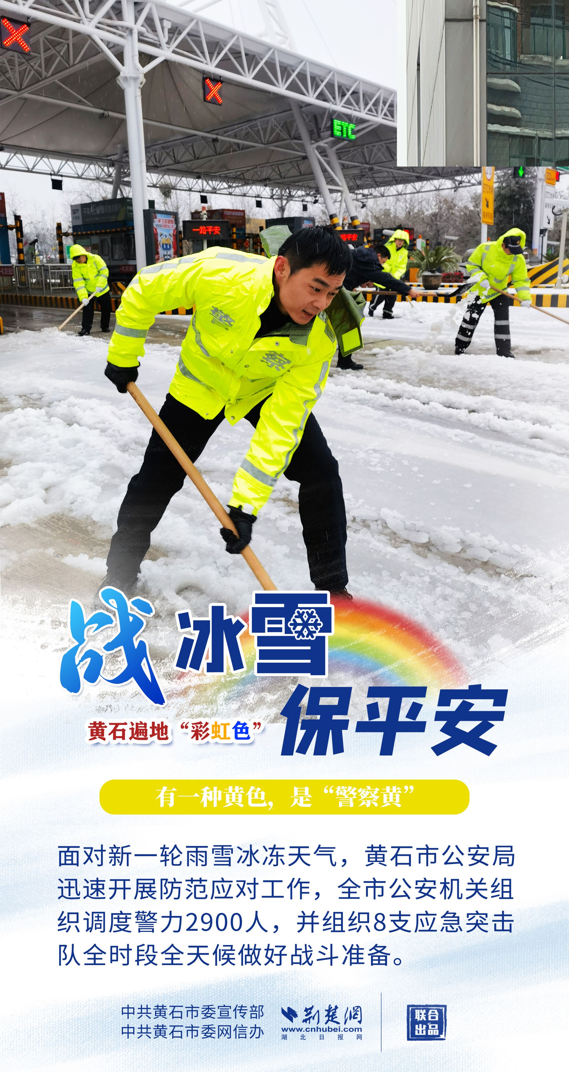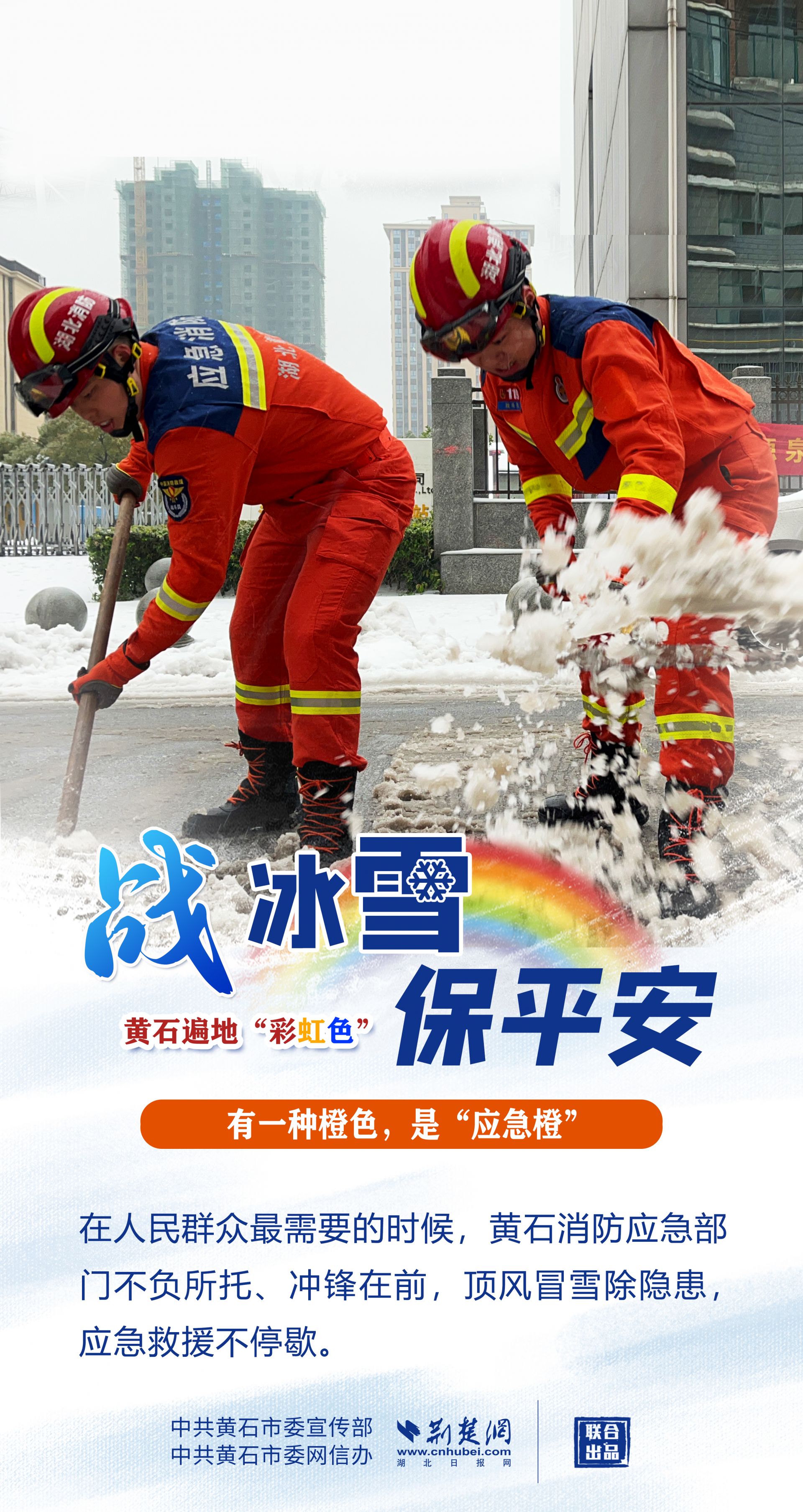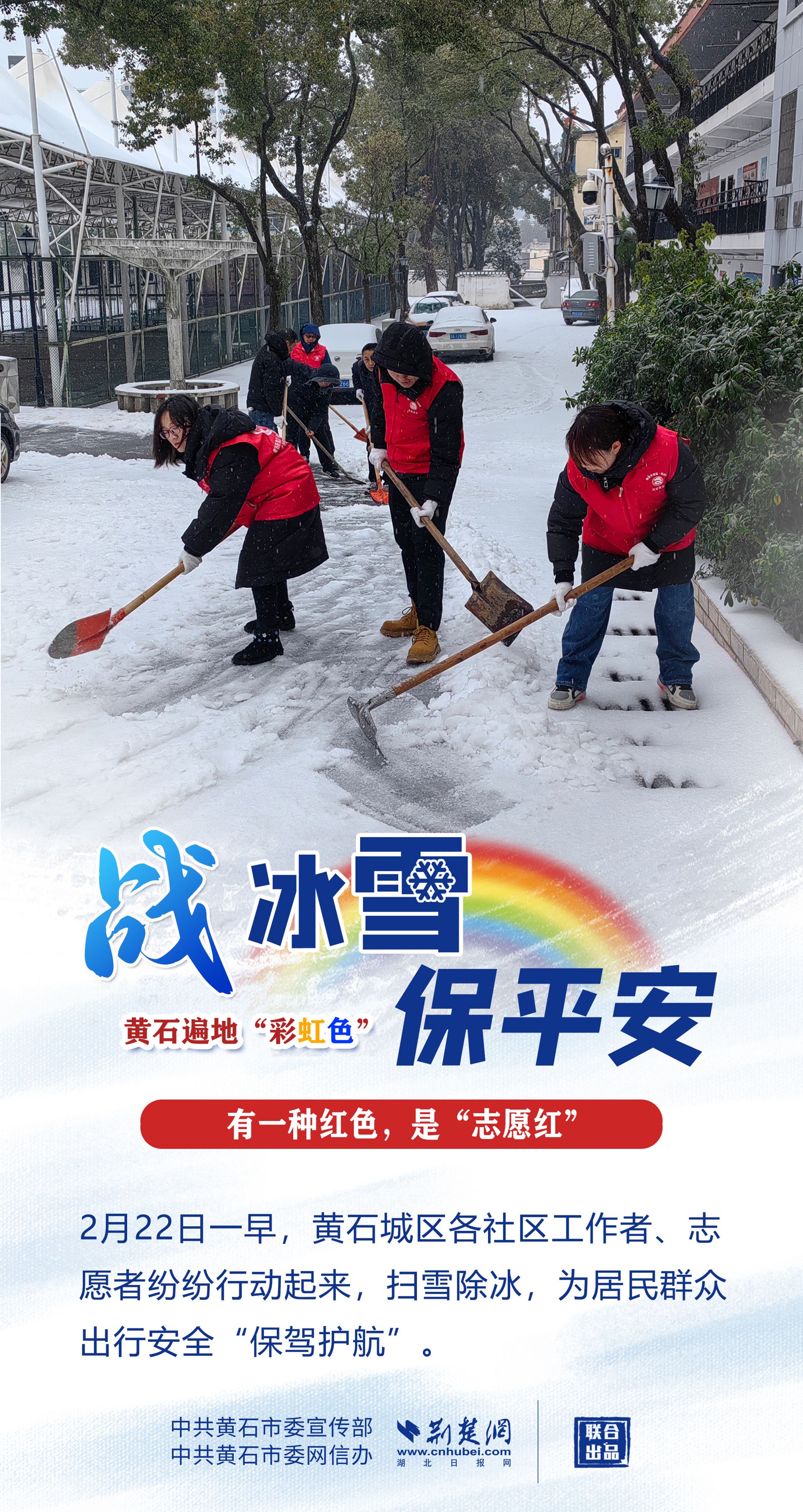 志愿紅、應急橙、警察黃、郵政綠……黃石各地、各部門以雪為令,迎風戰(zhàn)雪,市縣兩級2.4萬下沉黨員干部迅速到位,各項工作快速有序鋪開,全力保障人民群眾生命財產安全,最大限度減輕冰雪帶來的影響。