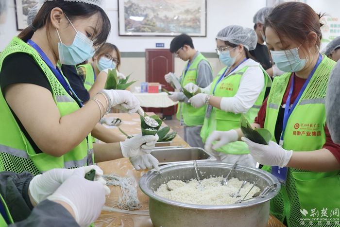 翠綠的粽葉在大家手中輕輕翻飛,潔白的糯米被精心包裹,再搭配上香甜的餡料,一個個形狀飽滿的粽子逐漸成形。