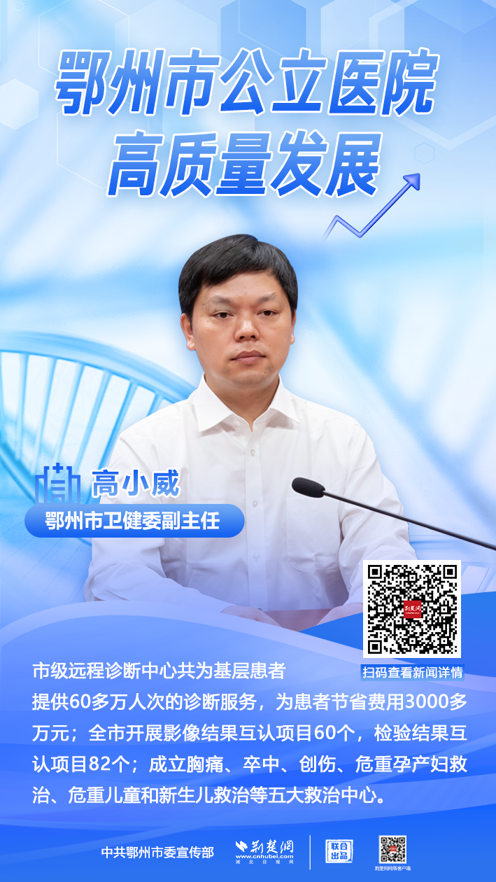 荊楚網(wǎng)(湖北日?qǐng)?bào)網(wǎng))訊(記者 王焱堯 姜夢(mèng)瑤)8月8日,鄂州市舉辦公立醫(yī)院高質(zhì)量發(fā)展新聞發(fā)布會(huì),通報(bào)近年來該市在“推進(jìn)衛(wèi)生健康事業(yè)高質(zhì)量發(fā)展”中,公立醫(yī)院發(fā)展取得的系列成績(jī)。