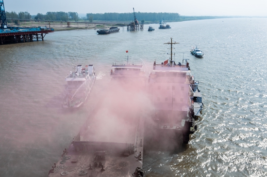 記者看到,演習由局交管中心對演習水域?qū)嵤┡R時交通管制、航道部門調(diào)整演習水域航標開始,演習科目為先導(dǎo)索脫落打撈、船舶甲板起火、船舶溢油處置、故障船舶拖帶作業(yè)、人員落水應(yīng)急處置等多科目綜合性演習,實景模擬了燕磯大橋后續(xù)施工作業(yè)可能遇到的各種水上突發(fā)事件。