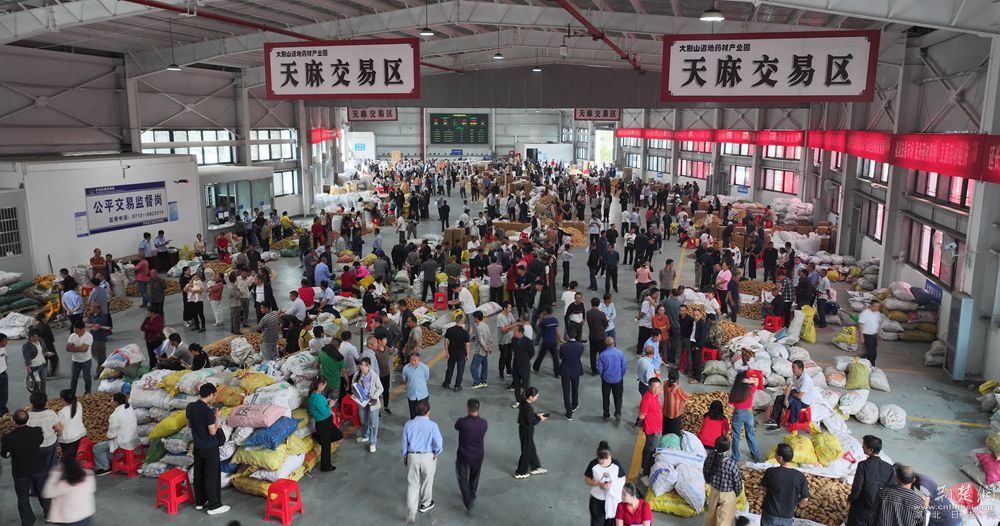 2023年10月15日,大別山道地藥材產(chǎn)業(yè)園交易市場(chǎng)在九資河鎮(zhèn)鳴鑼開市,當(dāng)日成交額突破2500萬(wàn)元,吸引了2000多名本地藥農(nóng)進(jìn)場(chǎng)售賣,400多名客商從陜西、云南、安徽等地慕名而來。