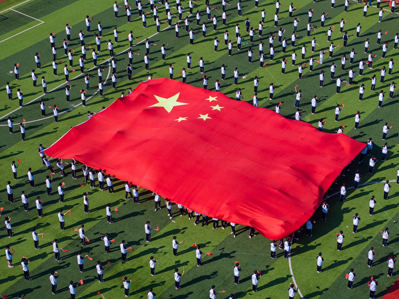 超大規(guī)格的國旗驚艷亮相。黃石日報 周巍 攝