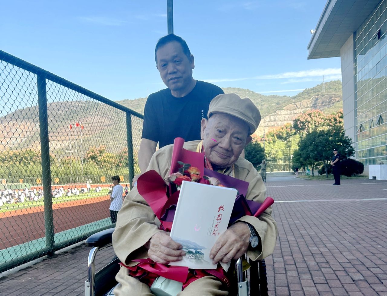 98歲老兵庫芳禹對《致敬英雄》報道集愛不釋手。呂鑒蕾 攝