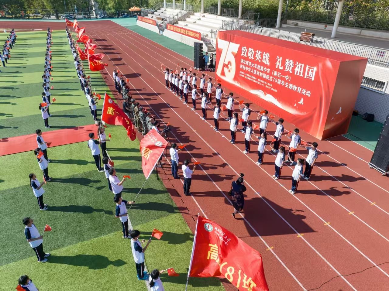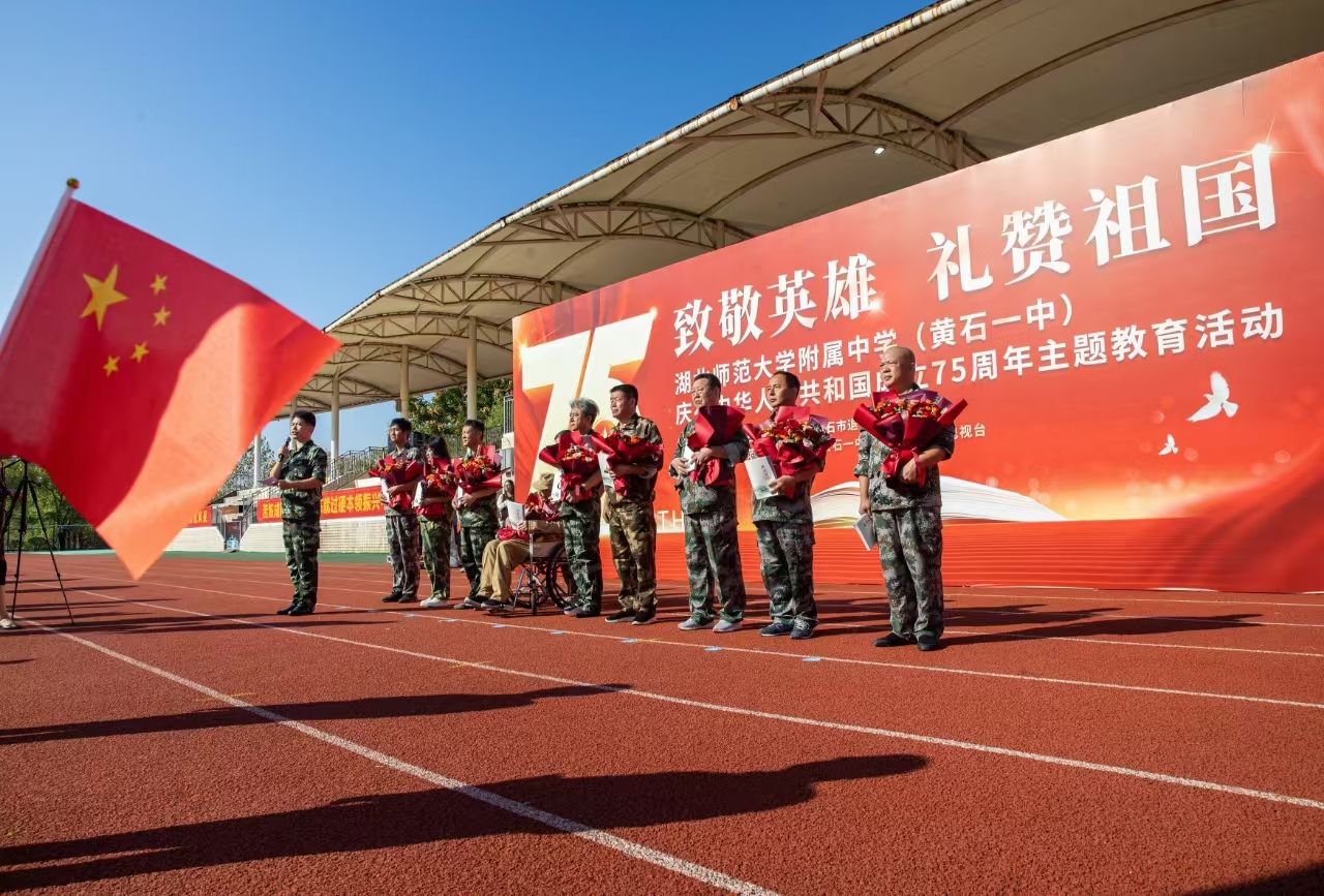 9月29日上午,國慶節(jié)臨近,“致敬英雄 禮贊祖國”——湖北師范大學附屬中學(黃石一中)慶祝中華人民共和國成立75周年活動舉行。活動通過走一次紅地毯、唱一首主題歌、獻一束手捧花、送一本報道集等形式,致敬為共和國無私奉獻的英雄們。