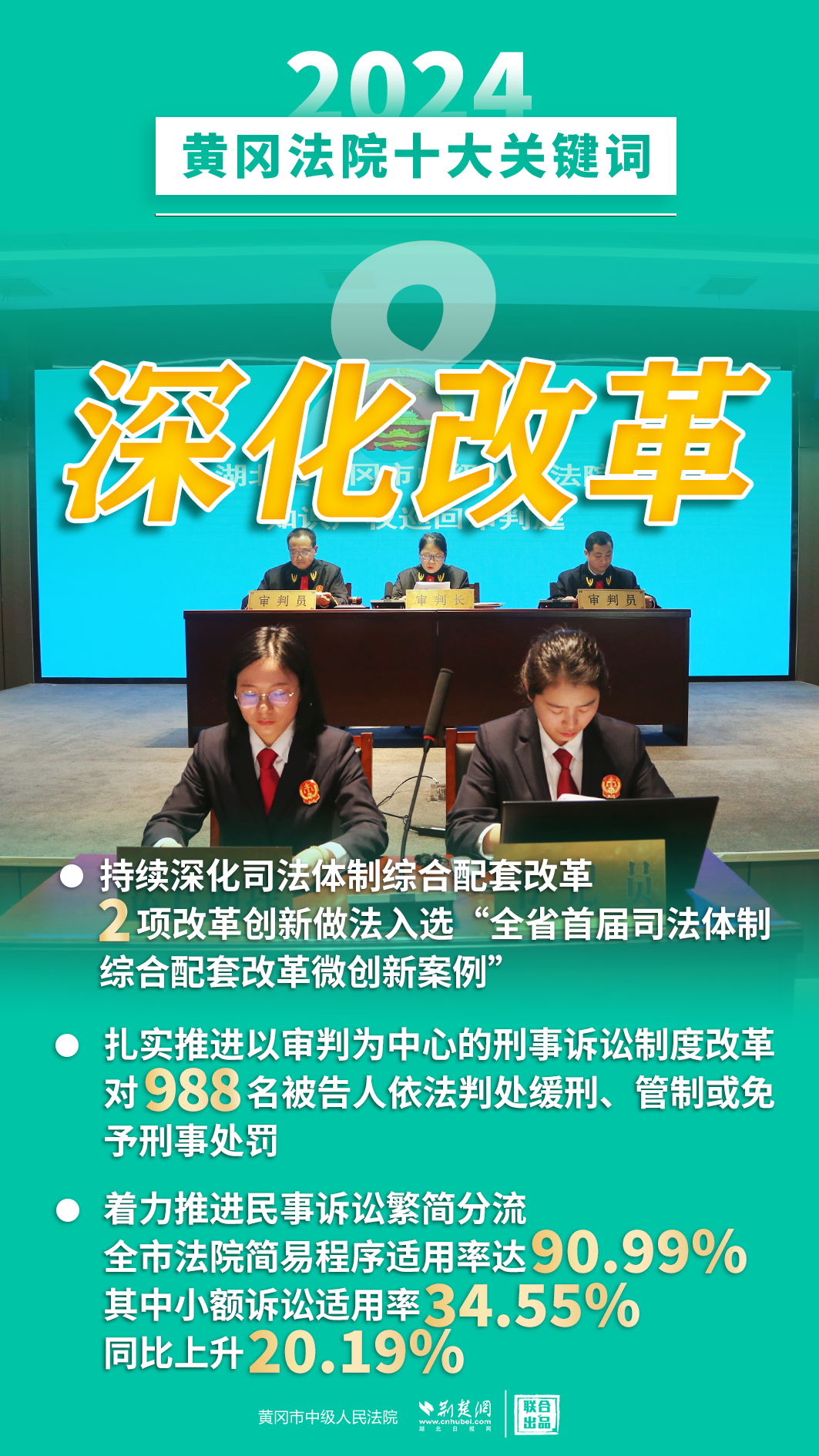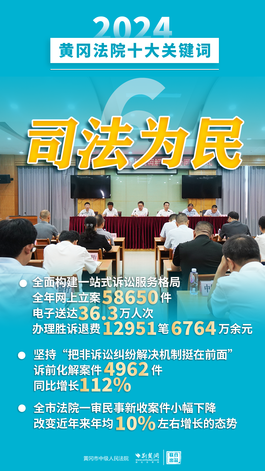 2024年,黃岡法院深入學習貫徹黨的二十屆三中全會精神,認真落實黨中央決策部署和省委、市委工作要求,忠誠履職、擔當作為,著力護航經濟高質量發(fā)展、助推社會高效能治理、守護群眾高品質生活,各項工作取得新發(fā)展、實現(xiàn)新突破。