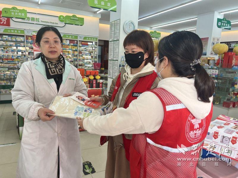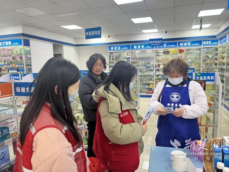 給藥店人員發(fā)放宣傳手冊。 通訊員供圖