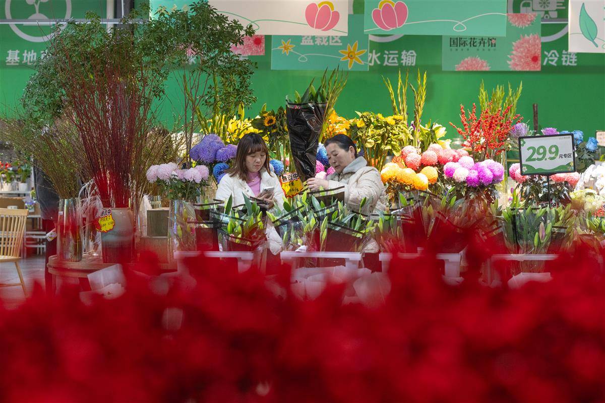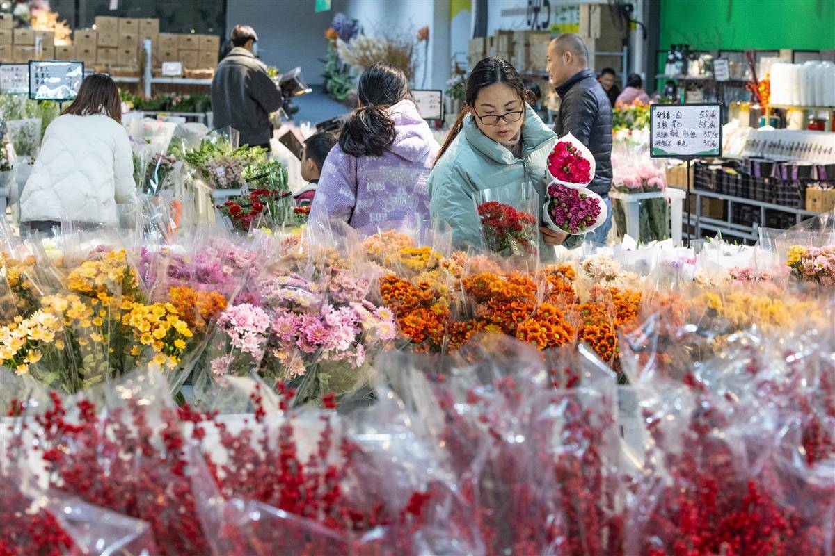 貼春聯(lián)、掛燈籠、春節(jié)臨近,年宵花市場一片火熱。2025年1月16日,在武漢市黃陂區(qū)漢口北鮮花小鎮(zhèn),各色花卉爭奇斗艷,蝴蝶蘭、冬青、佛手柑、蠟梅等年宵花已大量上新,吸引了不少市民前來選購,為家里增添喜慶氣氛。