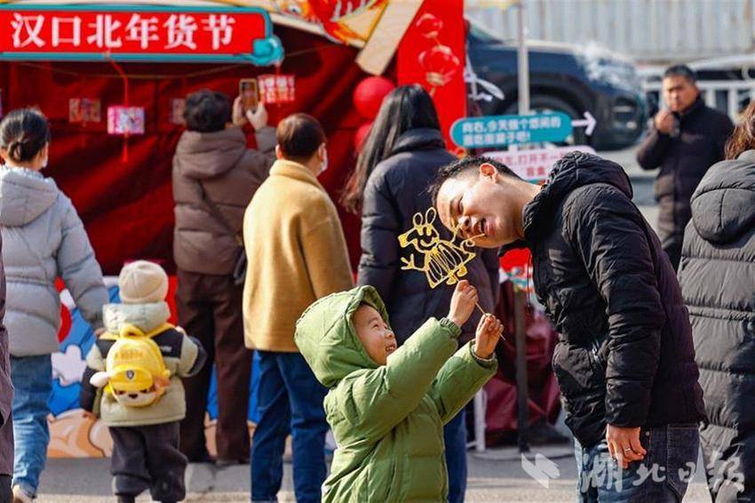 漢口北新春年貨節(jié)在與游客互動(dòng)上做足功夫——除了有舞獅表演、拓印紅包、面塑、糖畫、剪窗花等年味活動(dòng),還有書法名家為客商和市民書寫“私人訂制”春聯(lián)。