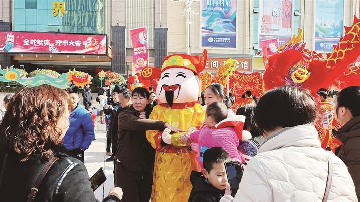 有攤主們還準備了妙趣橫生的猜燈謎等互動小游戲,喜氣洋洋的“財神”則全場巡回互動,大人小孩們紛紛上前觸摸他懷中那碩大的“金元寶”,祈福新的一年福氣多多。