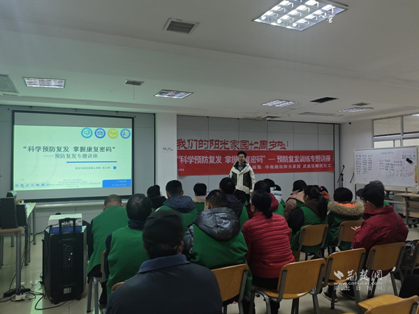 荊楚網(wǎng)(湖北日報網(wǎng))訊(記者 李燕 通訊員 張晶 孫琳)為提升大眾對精神障礙的認(rèn)知,幫助患者及其家屬掌握預(yù)防復(fù)發(fā)和康復(fù)的有效方法,2月26日上午,由武漢市武東醫(yī)院心理科阮云鋒醫(yī)生主講的“點(diǎn)亮心光,守護(hù)健康——科學(xué)預(yù)防復(fù)發(fā),掌握康復(fù)密碼”講座在中南街道陽光家園舉行。