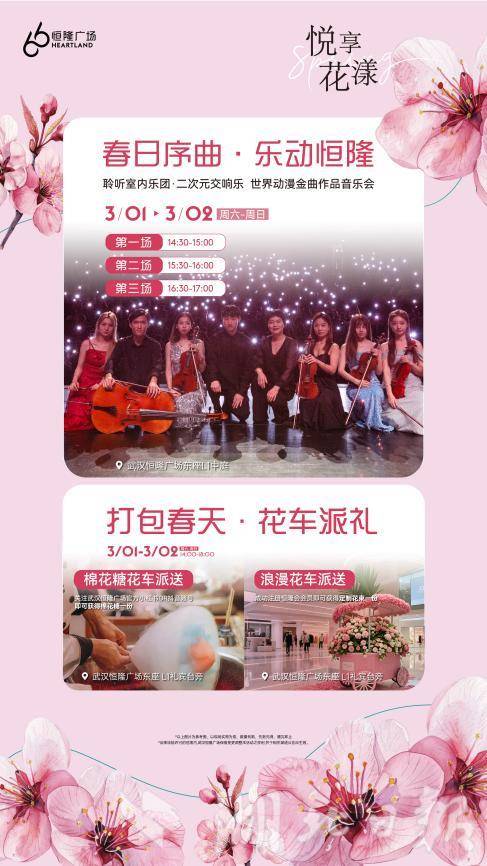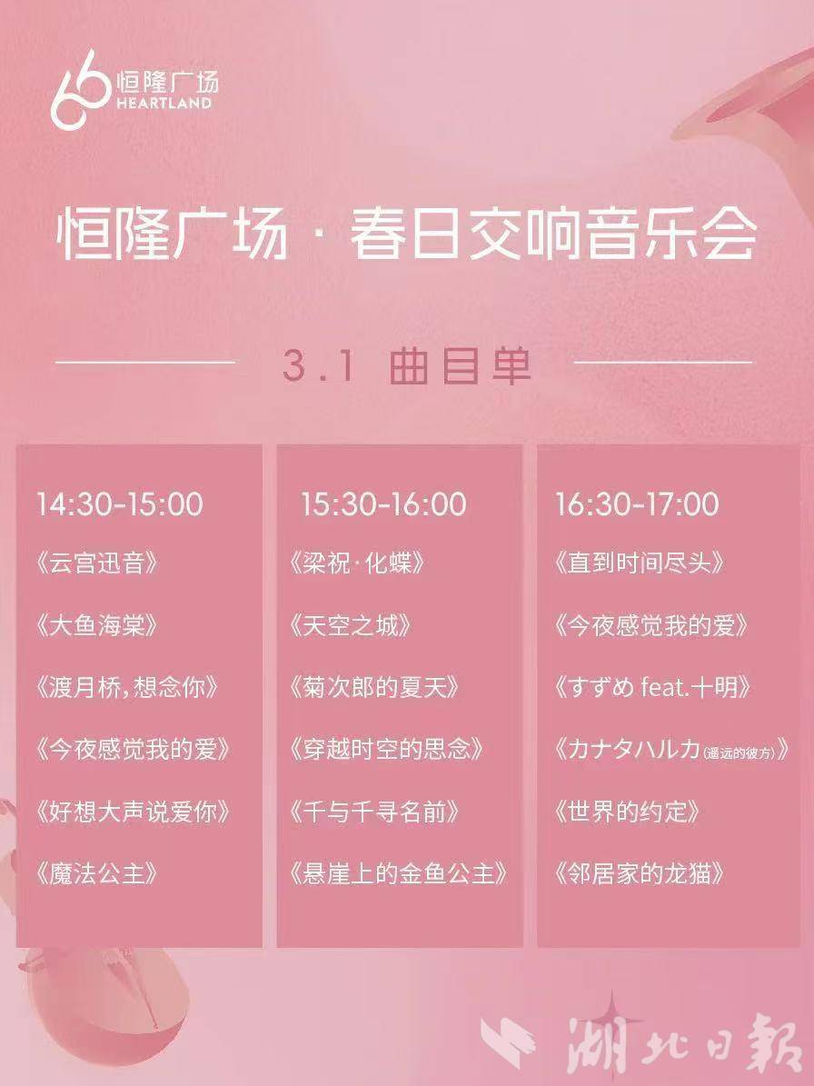 3月1日-2日,春日動(dòng)漫金曲音樂會(huì)即將在武漢恒隆廣場(chǎng)舉行。本次音樂會(huì)由聆聽室內(nèi)樂團(tuán)帶來,邀請(qǐng)武漢市民共賞“春日序曲”。