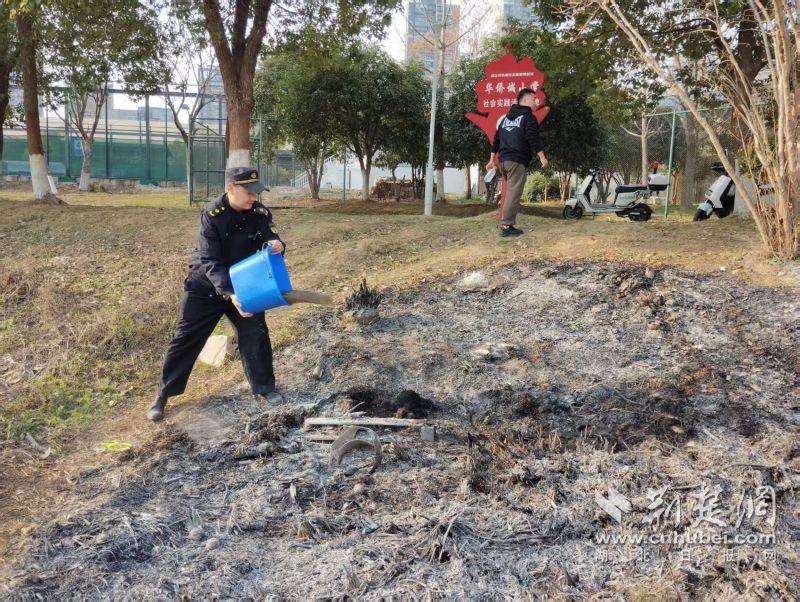 誰知,下午4點(diǎn)50分,城管隊(duì)員巡查華僑城運(yùn)動(dòng)中心綠化帶時(shí),再次發(fā)現(xiàn)濃煙及明火隱患,隊(duì)員周虎立即聯(lián)系消防部門鋪設(shè)高壓水管連接水槍,及時(shí)澆滅火星。為防止草坪陰燃,相關(guān)工作人員對(duì)現(xiàn)場(chǎng)燃燒物堆積處和溫度較高點(diǎn)位進(jìn)行清理,確?;饎?shì)不再復(fù)燃。