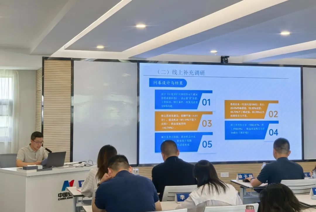 “以新需求為導向,打造‘區(qū)級核心商圈+街區(qū)融合中心+社區(qū)特色網(wǎng)點’三級聯(lián)動商業(yè)布局,全面提升居民的生活品質(zhì)?!薄皩⒖萍汲晒D(zhuǎn)化、團隊培養(yǎng)等指標納入A、B和C類人才動態(tài)評價體系,探索‘區(qū)內(nèi)貢獻’與‘(人才)住房資源’的權(quán)重平衡機制”。結(jié)業(yè)式上,五組學員代表分別圍繞城市更新、AI技術(shù)賦能產(chǎn)業(yè)轉(zhuǎn)型、發(fā)展現(xiàn)代服務業(yè)體系、都市近郊農(nóng)業(yè)發(fā)展路徑探索和打造人才“引育留用”服務體系等主題,詳細匯報了本組調(diào)研成果,對相關(guān)領(lǐng)域存在的問題進行深入剖析,提出了一些有借鑒意義的思考建議。