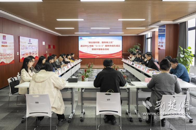 3年前,武漢中心書城在菱角湖畔拔地而起,街道第一時(shí)間選派了2名業(yè)務(wù)骨干駐點(diǎn)書城招商引商,派駐4名經(jīng)驗(yàn)豐富的專職黨建指導(dǎo)員做好聯(lián)絡(luò)服務(wù)、黨建指導(dǎo)、需求收集等工作。隨著樓宇企業(yè)不斷發(fā)展,需求愈發(fā)多元化,街道打破地域、部門界限,強(qiáng)化樓宇服務(wù)力量,組建了這支由區(qū)經(jīng)科局干部、街道干部、社區(qū)黨員組成的“1+1+1”突擊隊(duì)。