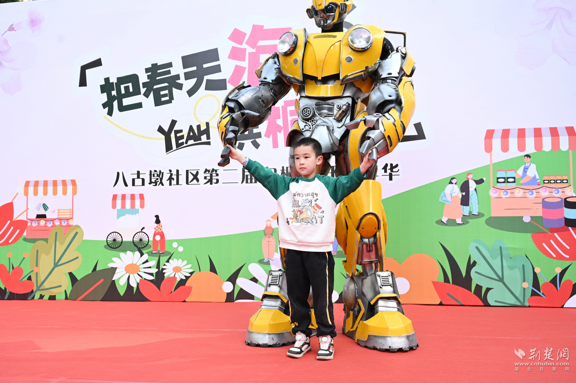 全民共建聚合力。活動籌備階段,社區(qū)黨委充分發(fā)揮居民議事會作用,發(fā)動30余名居民志愿者成立策展專班。轄區(qū)居民羅先生主動請纓,免費(fèi)贊助大黃蜂機(jī)器人、小丑巡游等氛圍裝置,并與社區(qū)文藝團(tuán)隊(duì)自編自演的5支主題舞蹈形成創(chuàng)意碰撞。當(dāng)三米高的炫酷機(jī)器人牽手小丑姑娘巡游時,現(xiàn)場瞬間化作歡樂海洋,居民們爭相與巡游隊(duì)伍合影,自發(fā)在朋友圈發(fā)起“泡桐花下的奇遇”話題互動,活動未半已收獲上百人次線上傳播。