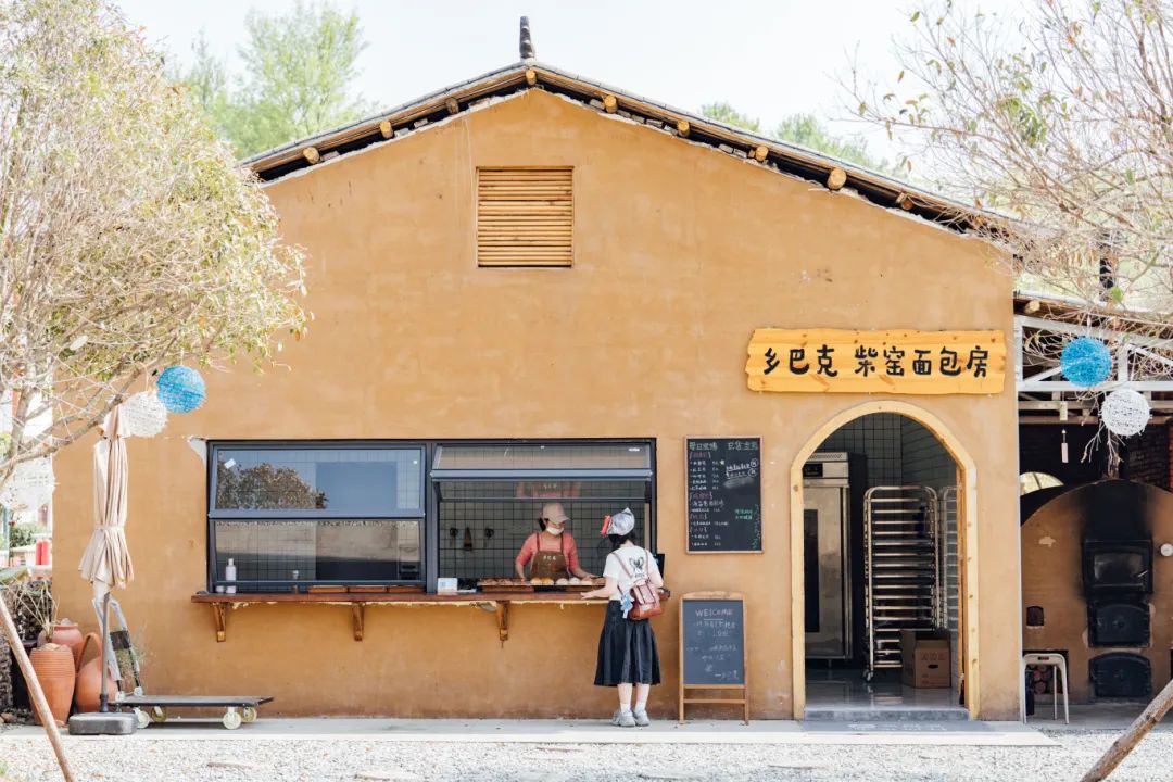 300℃的土窯,柴火噼啪作響。戴著粗布手套的師傅用長(zhǎng)柄木鏟送進(jìn)面團(tuán),時(shí)間一到,米面包、紅豆包、咖啡包等現(xiàn)烤面包裹著焦香出爐,讓人垂涎欲滴。