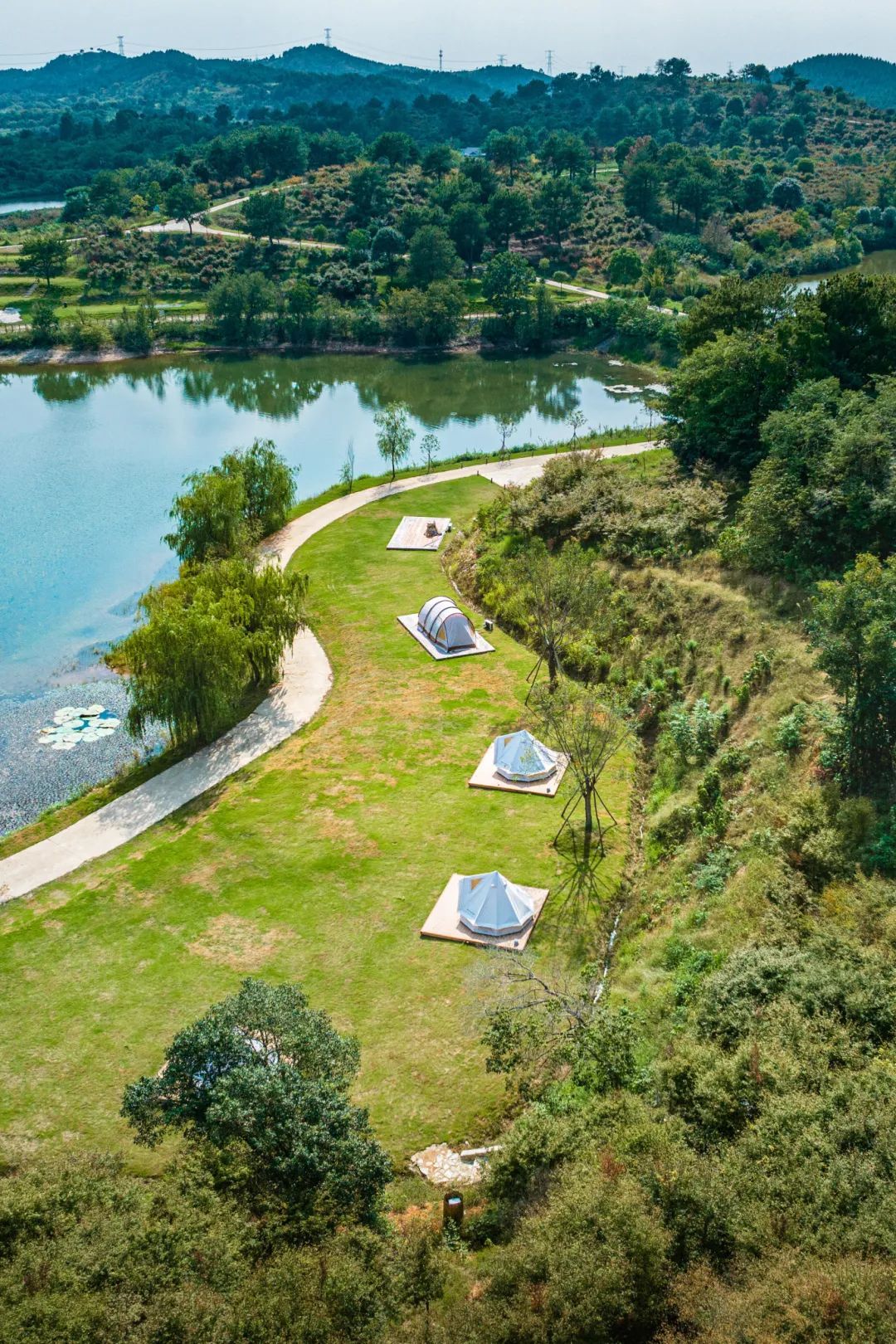 星星湖營(yíng)地占地2000畝,清澈的池塘和開(kāi)闊的自然景觀組成了這一處宛若仙境的景色。