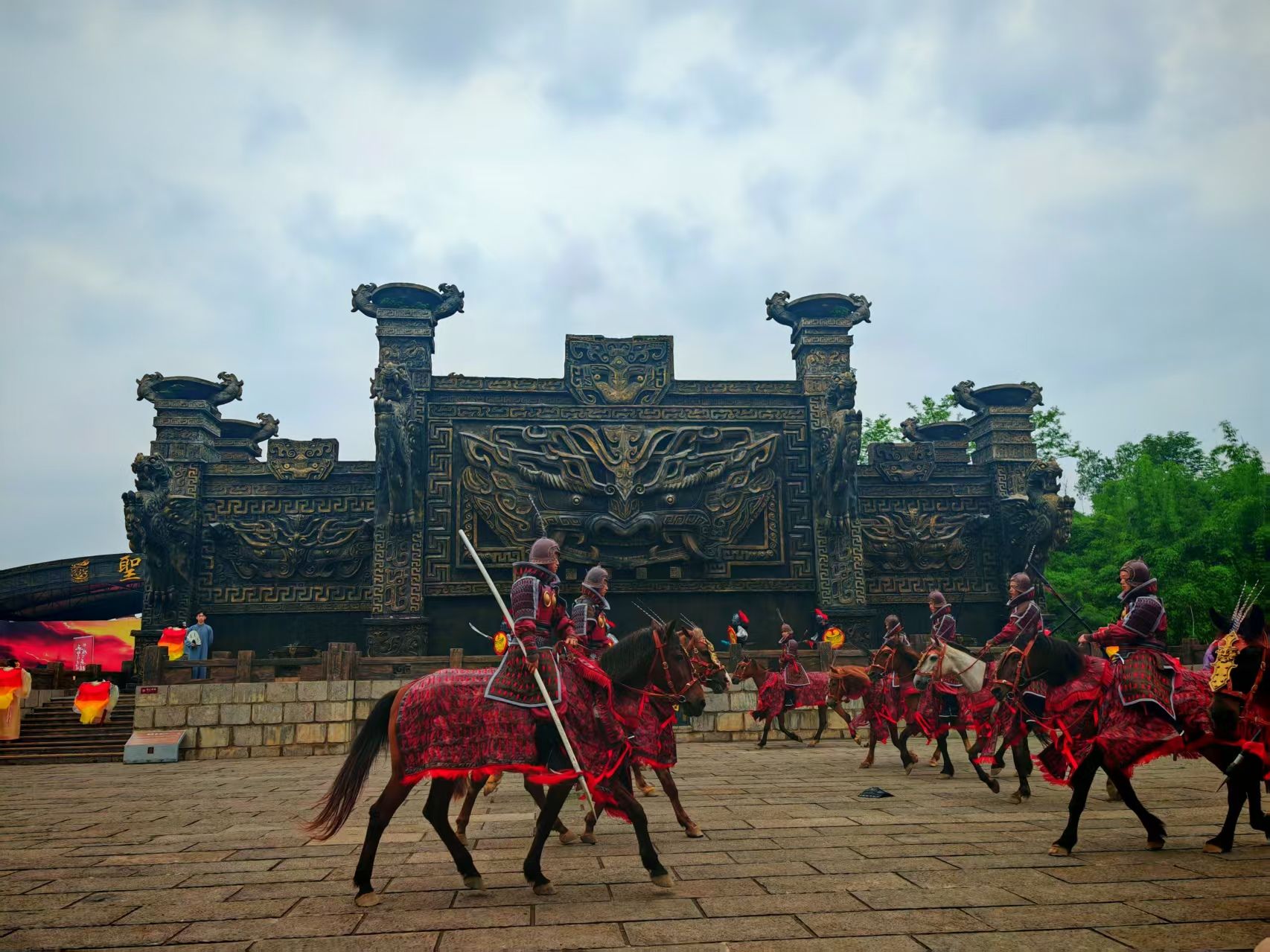 “各位看官,三國演義第四十四回到第五十回說道,曹操不費吹灰之力擁有了荊襄水軍,號稱80萬大軍向長江推進……”5月1日上午9時,隨著“說書人”一聲高喊,三國赤壁古戰(zhàn)場城門緩緩打開,10名戰(zhàn)士策馬躍出,戰(zhàn)鼓響起,劉備、關(guān)羽、張飛等三國人物也陸續(xù)出場,現(xiàn)場掌聲不斷。沉浸式場景將數(shù)百名圍觀游客穿越回1800多年前的三國時空。
