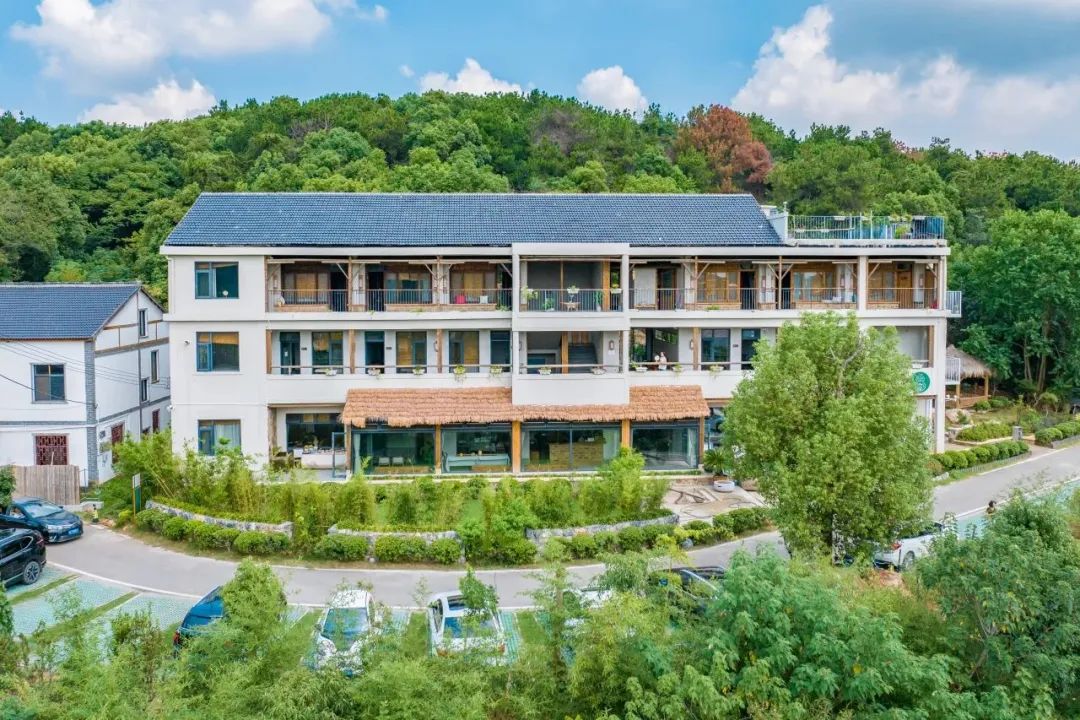 九真山腳下,隱匿在竹海森林之中,私密而小眾。民宿建筑取意“花開有時,知音難覓”——主樓如綻放的夏花般舒展,庭院中蜿蜒的水系暗合“高山流水”的韻律。