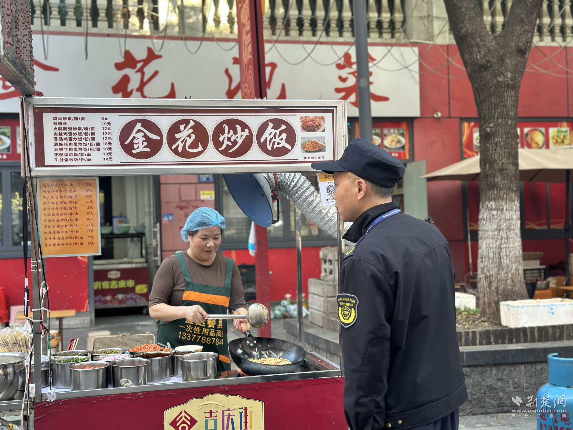 黃師傅口中的劉隊長,是大智街道綜合執(zhí)法中心的隊員劉海濤。自大智街道設立吉慶街外擺規(guī)范管理區(qū)域以來,這條匯聚了火鍋、燒烤、鹵味的特色美食街區(qū),就成了劉海濤日常巡查管理的“一畝三分地”。