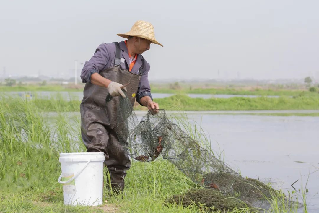 位于祁家灣街雙墩村的武漢中胤生態(tài)農(nóng)業(yè)專業(yè)合作社內(nèi),連片的小龍蝦養(yǎng)殖基地格外壯觀,蝦農(nóng)們身著防水服,將提前放置在蝦田中的蝦網(wǎng)緩緩撈起,隨著蝦網(wǎng)破水而出,一只只外殼紅亮、活力十足的小龍蝦在網(wǎng)中翻騰跳躍,水波蕩漾間,處處透著生機(jī)。