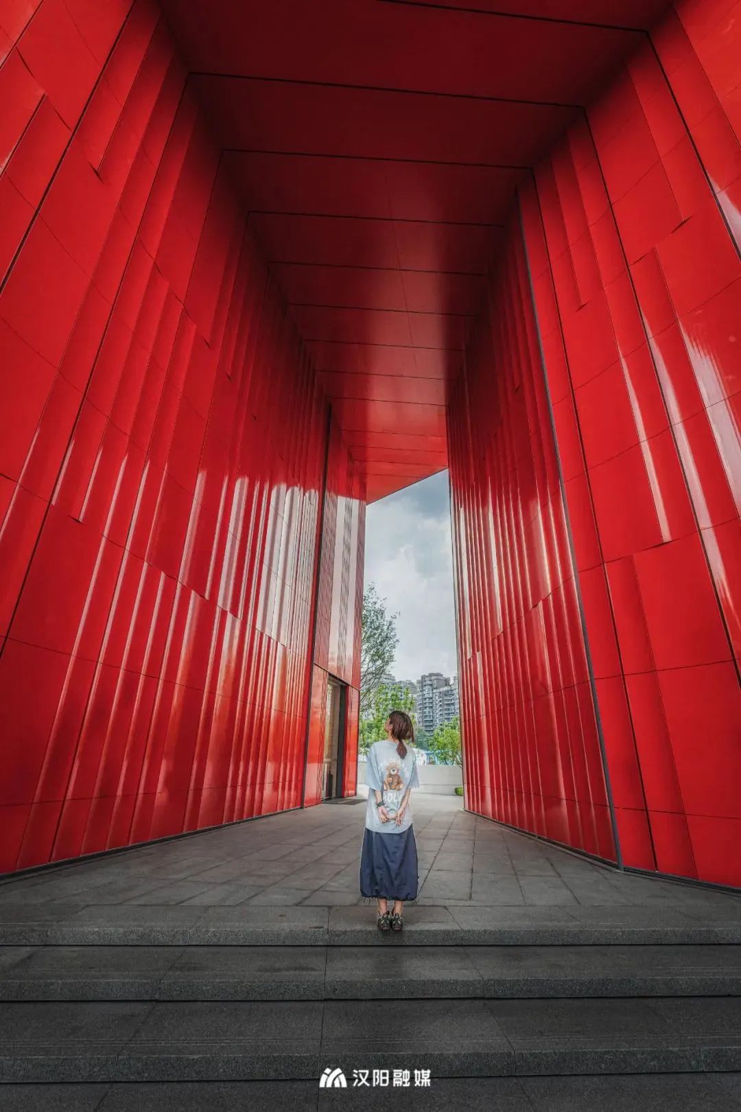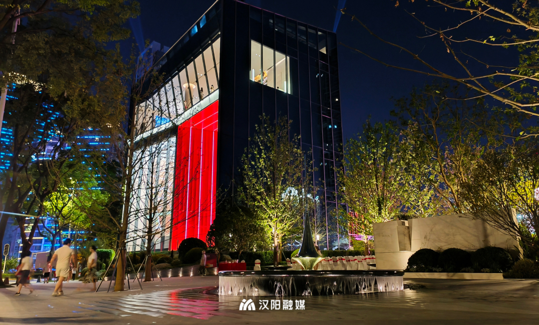 △「武漢之眼」中間鏤空形成一個(gè)紅色取景框。站在「武漢之眼」正前方,你會(huì)被其宛如水晶切割的建筑體深深震撼,中間斜向構(gòu)造,形成一個(gè)巨大的紅色取景框,在光的引導(dǎo)下,視線聚焦,隨手拍都是大片。