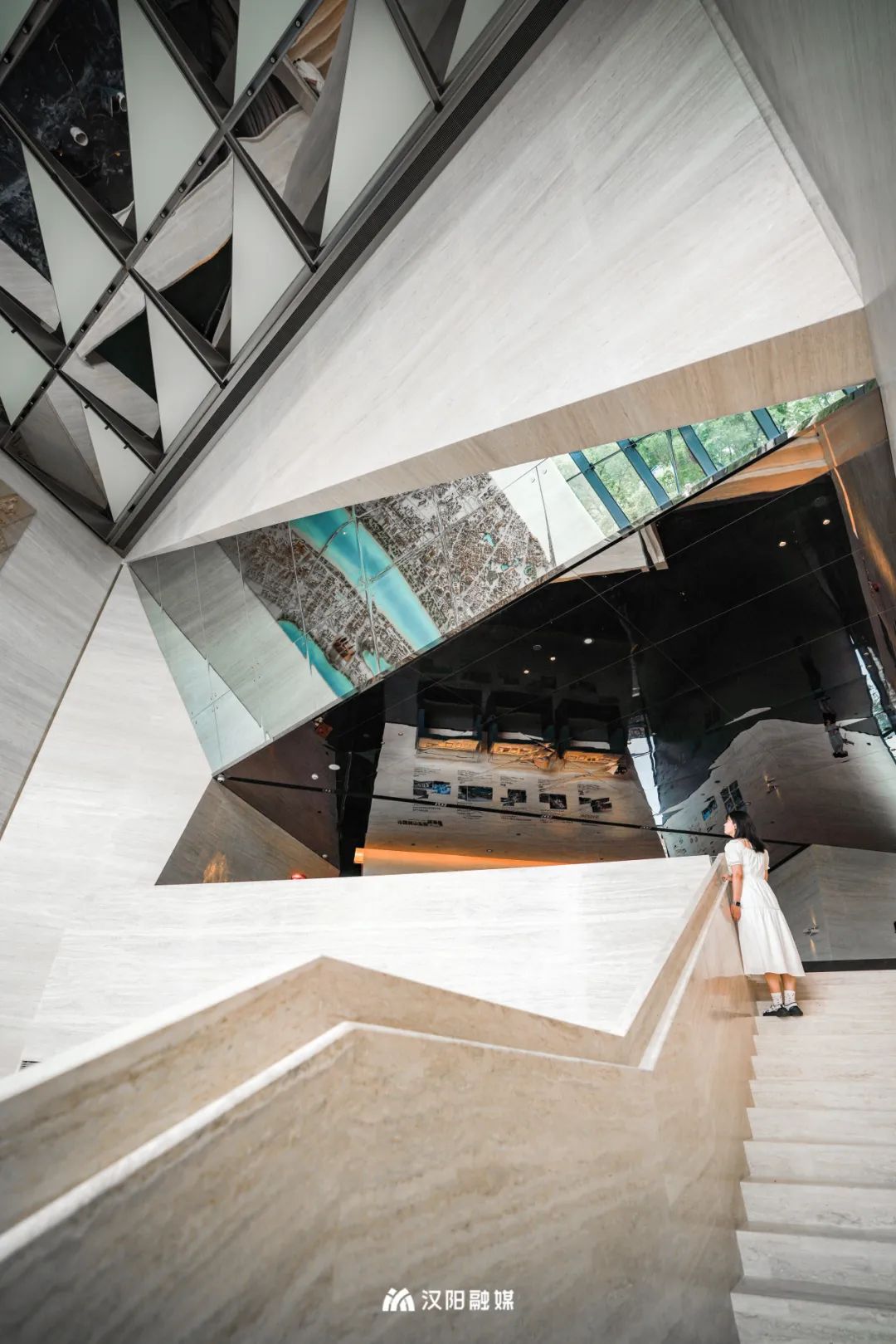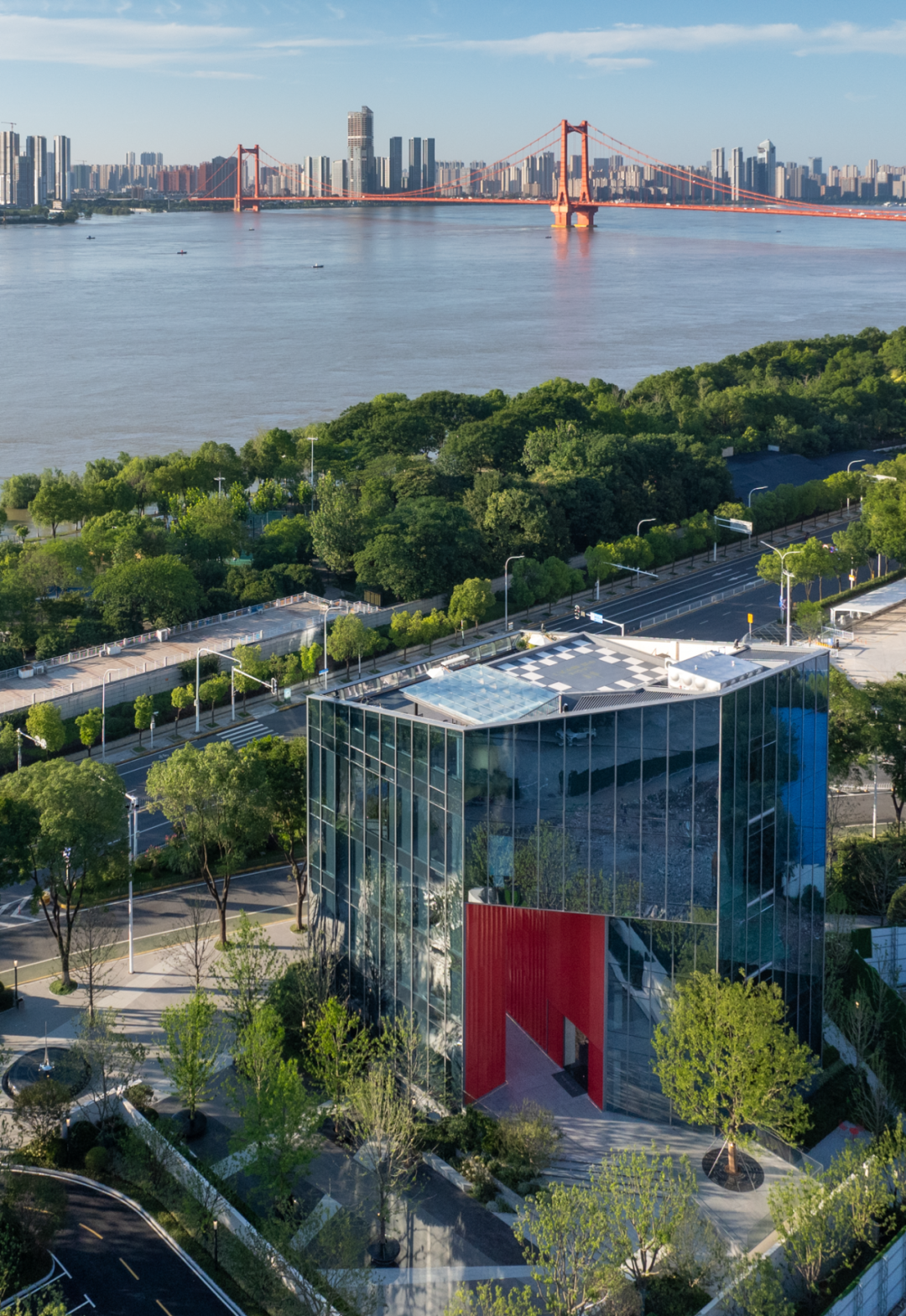巨大紅框建筑面朝長(zhǎng)江,矗立在漢陽(yáng)古城文化軸的端點(diǎn),眼前是“唯見長(zhǎng)江天際流”的盛景,背后是超1400年歷史的顯正街延伸而去。