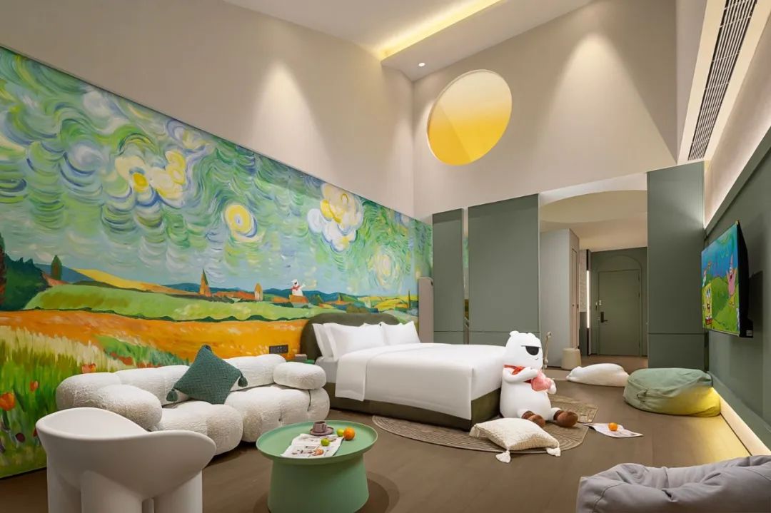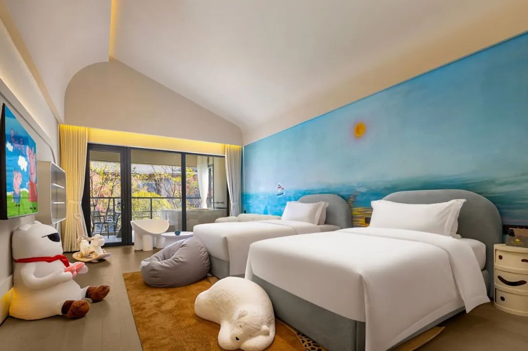 29間主題客房承包全家歡笑,從蘑菇王國到兔子先生,從綠野仙蹤到夢樂島,每一扇門后都藏著無盡的驚喜與想象??头烤拇蛟鞂偻け诋嫞路鹱∵M絢爛多彩的童話世界。