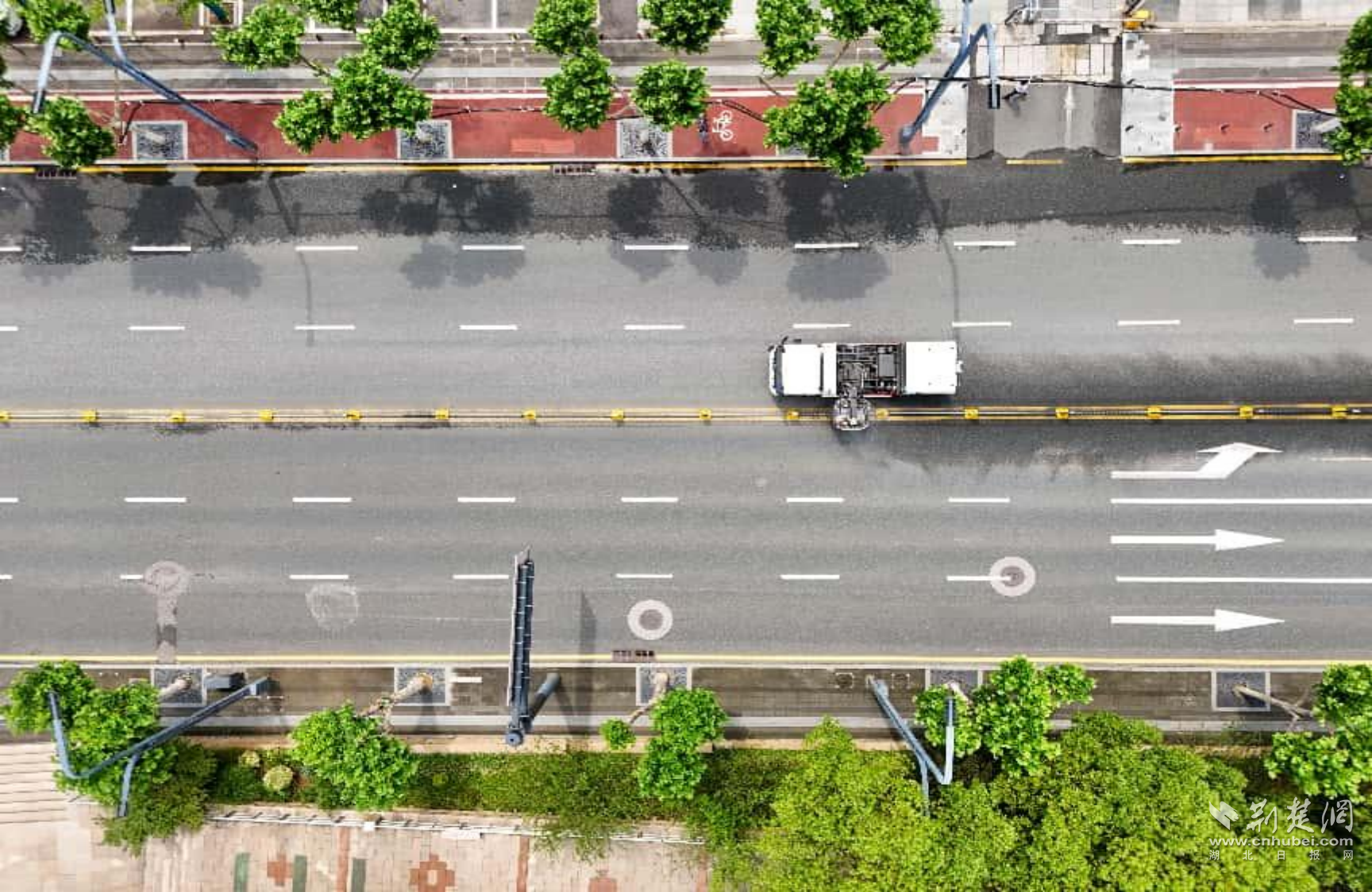 荊楚網(wǎng)(湖北日報網(wǎng))訊(記者 何婧 通訊員 費帆 白丹 覃小玲)6月12日,武昌區(qū)臨江大道,記者在長江觀景第一臺旁看到,新能源護欄清洗車緩緩駛過,隨著機械刷頭滾動,水霧噴灑而下,不僅護欄潔白如初,連地面上的黃線也一并沖刷干凈。這樣的場景,如今在臨江大道已經(jīng)成為日常。