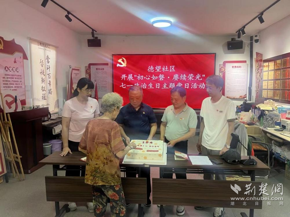 在德望社區(qū),一場(chǎng)主題為“初心如磐?賡續(xù)榮光”的主題活動(dòng)溫情上演。黨員們高舉右拳,面對(duì)黨旗莊嚴(yán)宣誓;不久后,一塊寫(xiě)著“慶祝中國(guó)共產(chǎn)黨成立104周年”的蛋糕被緩緩?fù)瞥?,生日蠟燭點(diǎn)亮的不只是節(jié)日氛圍,更是一份莊重的身份認(rèn)同。
