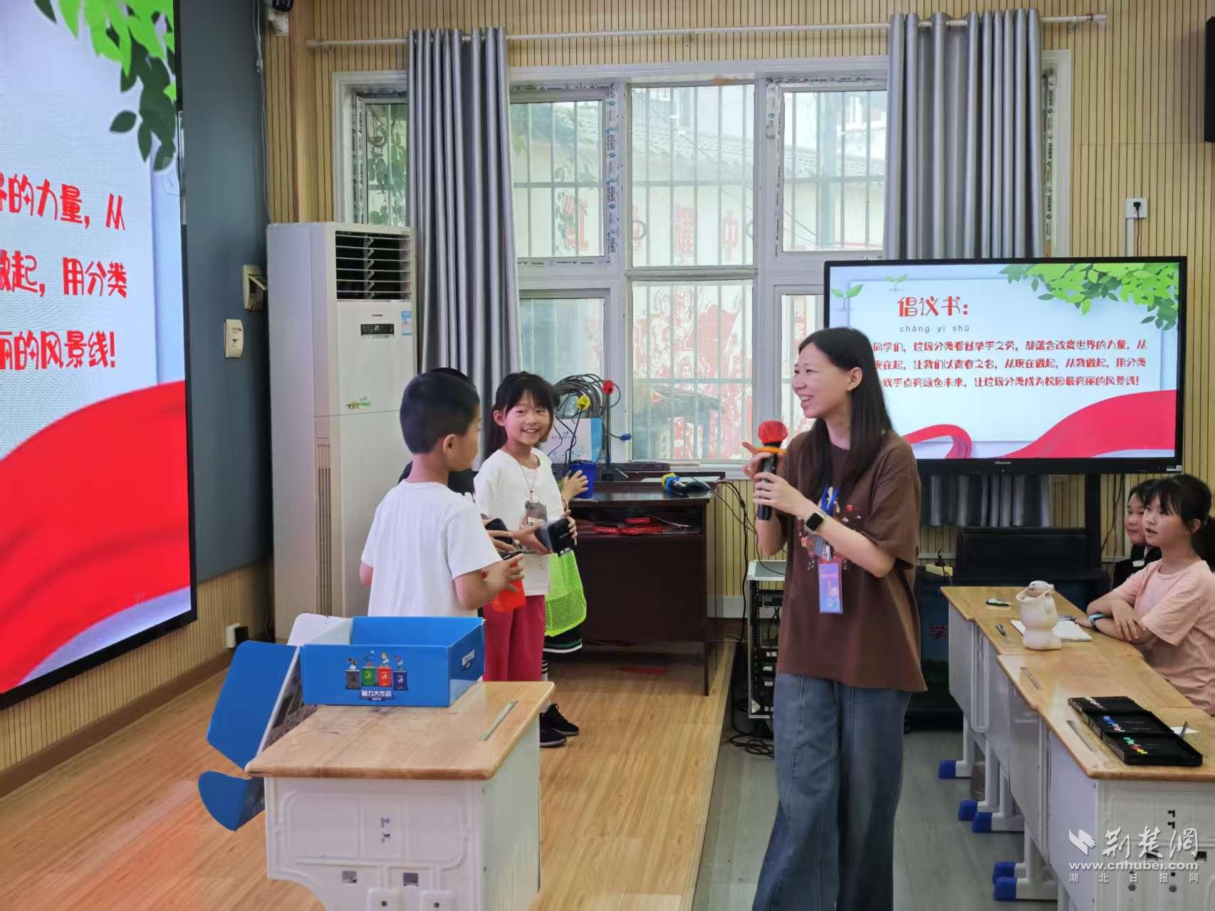 在祁家灣街“愛心托管班”上,工作人員通過視頻短片、圖文講解與紙卡互動,引導(dǎo)孩子們認(rèn)識垃圾種類,掌握分類規(guī)則。教學(xué)方式寓教于樂,生動易懂,廣受歡迎。