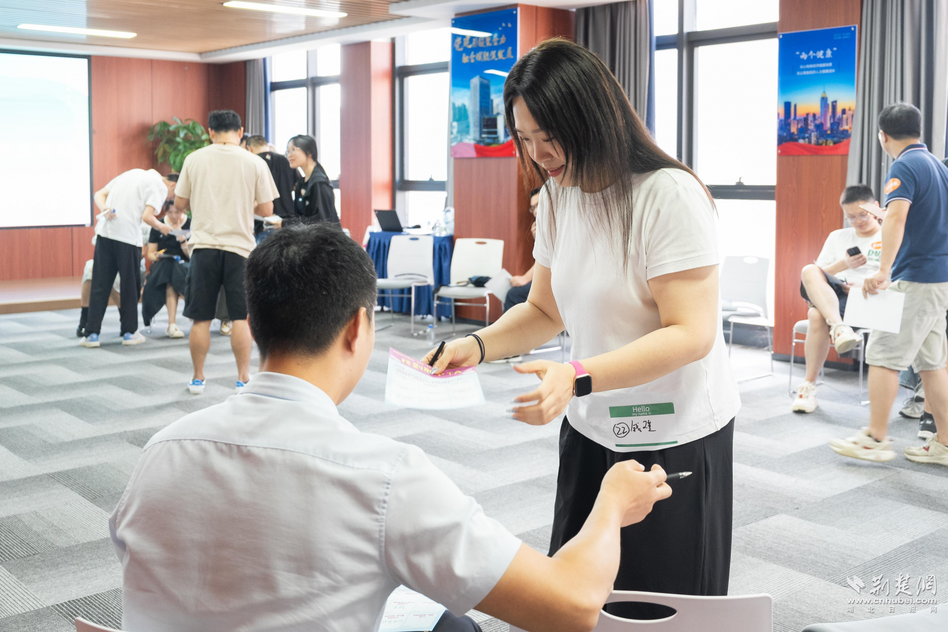 荊楚網(wǎng)(湖北日報(bào)網(wǎng))訊(記者 何婧 通訊員 顧蝶)七夕將至,浪漫升溫。8月27日下午,武漢中心書城14樓多功能活動室化身“心動空間”,一場別開生面的青年交友活動在此熱鬧登場。活動由江漢區(qū)唐家墩街汽運(yùn)社區(qū)聯(lián)合市、區(qū)團(tuán)委,攜手“開飯喜劇”共同舉辦,吸引了30余位來自金融、科技、文化等領(lǐng)域的單身青年參與。
