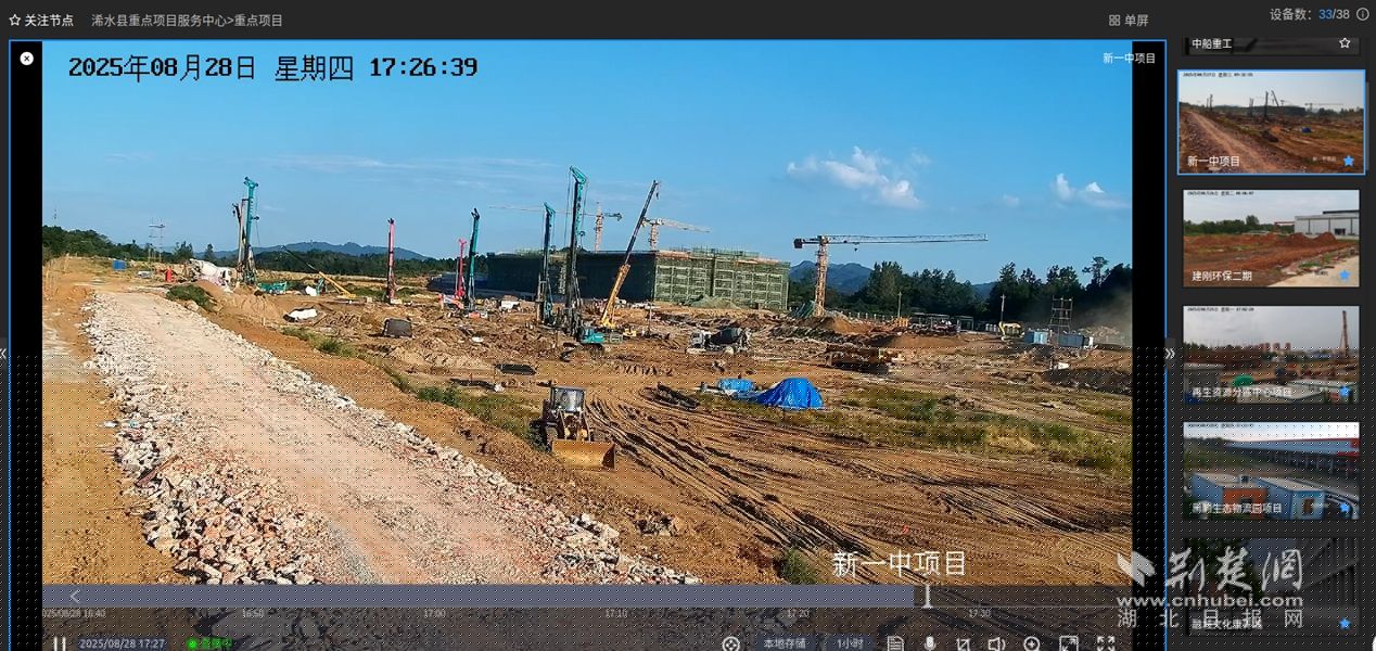 荊楚網(wǎng)(湖北日?qǐng)?bào)網(wǎng))訊(通訊員 張海軍)8月28日,在浠水縣重點(diǎn)項(xiàng)目服務(wù)中心電子大屏上,實(shí)時(shí)呈現(xiàn)著一幅生動(dòng)的建設(shè)圖景——多個(gè)重點(diǎn)項(xiàng)目工地的動(dòng)態(tài)畫面交替切換:挖掘機(jī)鐵臂高舉,運(yùn)輸車輛有序穿梭,工人們緊張忙碌……雖是遠(yuǎn)程監(jiān)控,現(xiàn)場(chǎng)氣息卻撲面而來(lái)。