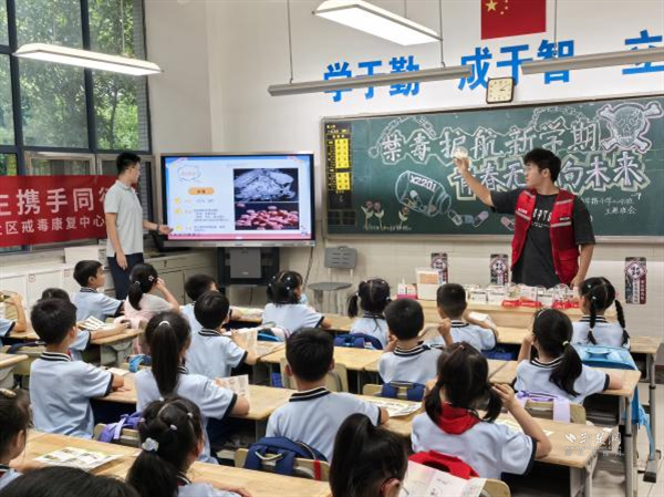 荊楚網(wǎng)(湖北日報網(wǎng))訊(通訊員 陳博龍)為進(jìn)一步增強(qiáng)青少年毒品防范意識,筑牢校園禁毒安全防線,9月8日,在武昌區(qū)禁毒辦的指導(dǎo)下,積玉橋街道聯(lián)合轄區(qū)派出所、社區(qū)戒毒康復(fù)中心及金都藍(lán)灣社區(qū),共同走進(jìn)中華路小學(xué)金都校區(qū),開展以“禁毒護(hù)航新學(xué)期、青春無毒向未來”為主題禁毒教育課堂,通過“宣講+課件+互動+宣誓”的豐富形式,為新學(xué)期校園安全增添“防毒屏障”。