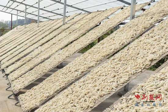 而這樣的環(huán)境催生了“豆絲”這一鄂州傳統(tǒng)美食。除了大米外,綠豆、黃豆、葛根等“豆絲”原材料生長在山溝、溪邊、林中。“每年入冬,幾乎家家起大灶開始制作豆絲,風干后可以留存整個冬天?!敝軛罱榻B。