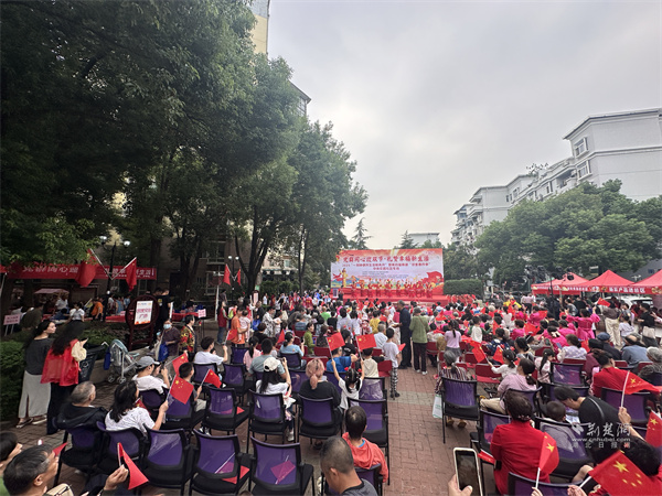 活動中,文藝表演與互動環(huán)節(jié)穿插進行,帥鼓《歌唱祖國》、民樂《地道戰(zhàn)》、黃梅戲《再唱山歌給黨聽》輪番上演。當54平方米的巨幅國旗緩緩展開,居民們揮舞小國旗齊唱贊歌,手中的紙飛機帶著美好祝愿飛向夜空,電子煙花綻放的瞬間,現(xiàn)場氣氛達到高潮。此外,三輪抽獎、“最受歡迎菜品”評選等環(huán)節(jié),更讓活動充滿驚喜與趣味。