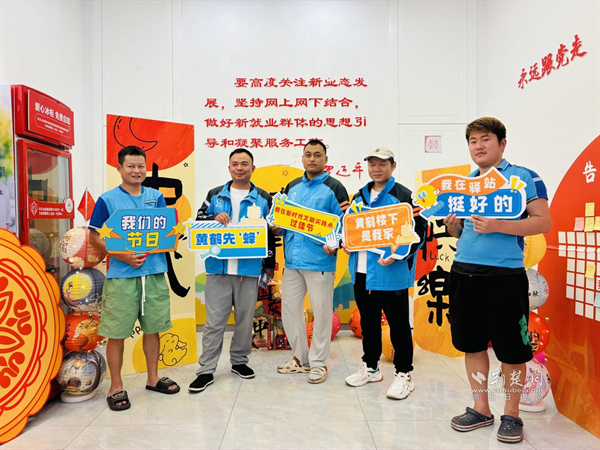 荊楚網(wǎng)(湖北日報網(wǎng))訊(通訊員 劉蘭蘭)9月28日下午,武昌區(qū)黃鶴樓街道新就業(yè)群體服務驛站、黃鶴先“蜂”新時代文明實踐點內(nèi)暖意融融,一場以“月滿華誕 驛家同歡”為主題的中秋國慶雙節(jié)特別活動在此開展?;顒油ㄟ^一系列精心設計的環(huán)節(jié),為快遞員、外賣騎手等新就業(yè)群體送上溫暖節(jié)日祝福,搭建互動交流橋梁,切實提升其歸屬感與幸福感。