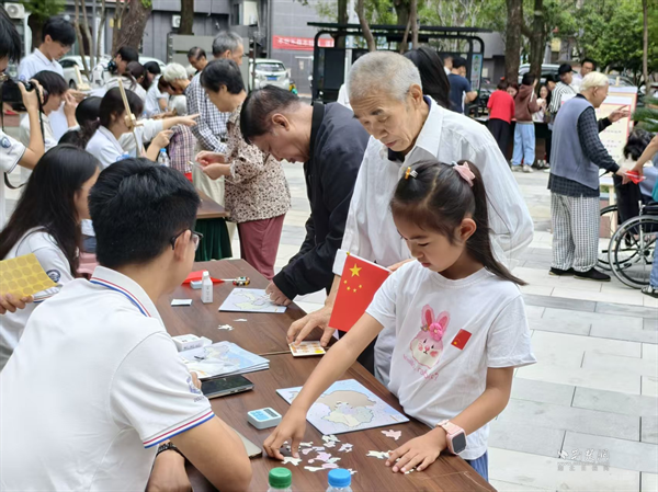 非遺體驗區(qū)內(nèi),月餅 DIY 工坊前排起長隊,家長與孩子攜手包餡、壓模,將團圓心意揉進面團;團扇拓印區(qū)里,居民在志愿者指導下,把桂樹、福字等圖案拓印在扇面,感受傳統(tǒng)手工藝的細膩;十八籽手串制作區(qū),一顆顆珠子串聯(lián)起對節(jié)日的美好期盼?!坝⑿廴宋镏嗌佟薄凹t色拼圖賽”“軍民大生產(chǎn)”等游戲讓居民在趣味中重溫紅色記憶?!昂秃⒆右黄鹱鲈嘛灒冶群⒆舆€開心!”帶著孫子參與的胡老師笑著說。