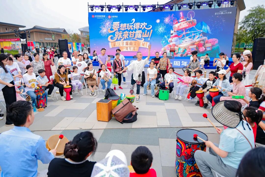 廣場(chǎng)正中,幾十名鼓手圍坐成圈,使用非洲鼓,在引導(dǎo)師帶領(lǐng)下共同演奏出悅耳的音樂(lè)。不少游客紛紛加入“百人手鼓派對(duì)”活動(dòng),學(xué)習(xí)非洲鼓演奏,現(xiàn)場(chǎng)氣氛熱烈。