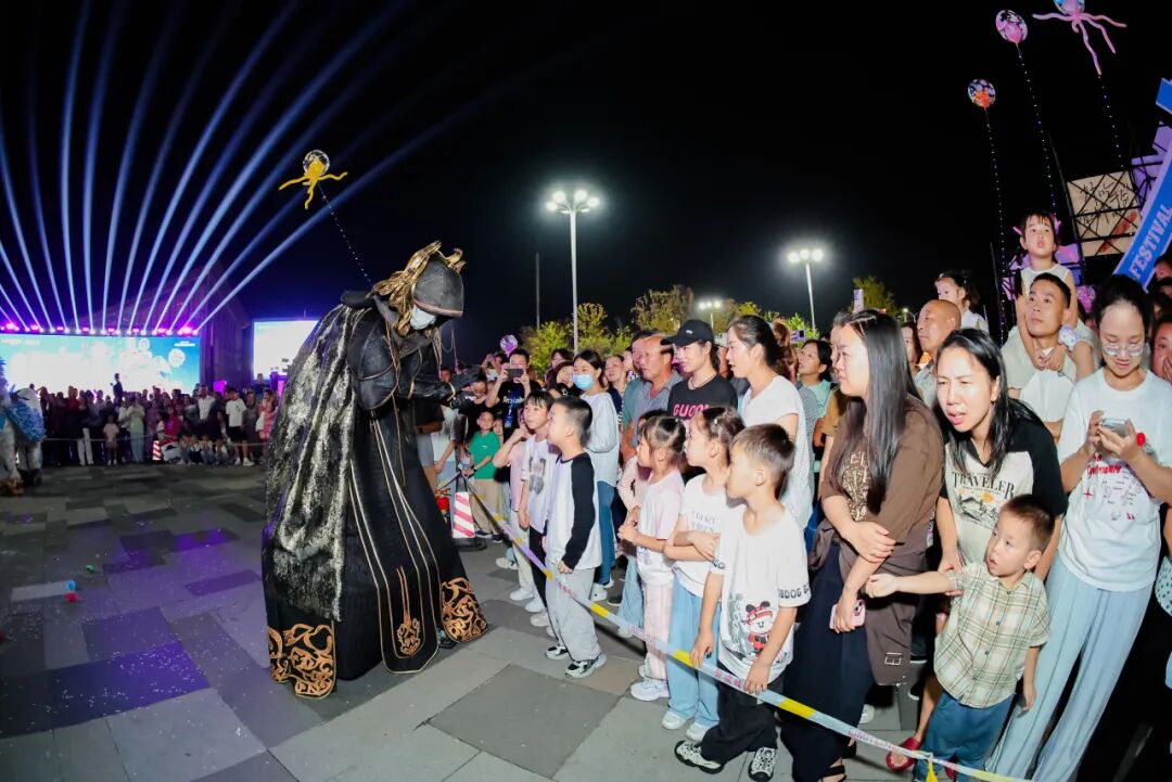 伴隨著開場(chǎng)音樂(lè),高2.4米的白袍巫師哈瑞、黑袍巫師、精靈法師瑞秋等角色踩著高蹺驚艷登場(chǎng),只見黑袍巫師從袖中掏出匕首,轉(zhuǎn)瞬間匕首燃起火焰,魔法師們與觀眾互動(dòng)握手,把彩帶撒向人群,將現(xiàn)場(chǎng)氣氛推向高潮。10月1日,黃陂區(qū)甘露山文創(chuàng)城國(guó)際街頭藝術(shù)節(jié)正式開幕,吸引近5萬(wàn)名游客前來(lái)打卡。