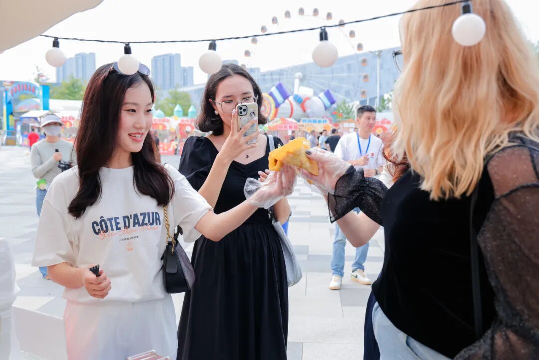 在廣場(chǎng)四周,美食市集也拉開帷幕,40余家全國(guó)人氣品牌及黃陂本土特色攤位紛紛亮出他們的“拿手菜”。黎黃陂路傳奇牛排店帶來(lái)厚切肉眼牛排;武漢本土精釀品牌“水豚釀造”攜手“糖豆咖啡”,提供手工精釀與現(xiàn)磨意式咖啡。泰式奶茶、手打檸檬茶、爆蛋吐司、辣炒年糕等亞洲街頭小吃,讓游客大飽口福。值得一提的是,來(lái)自杭州的原創(chuàng)毛絨品牌“雨過(guò)山”首次登陸武漢,以其治愈系設(shè)計(jì)成為打卡熱點(diǎn)。