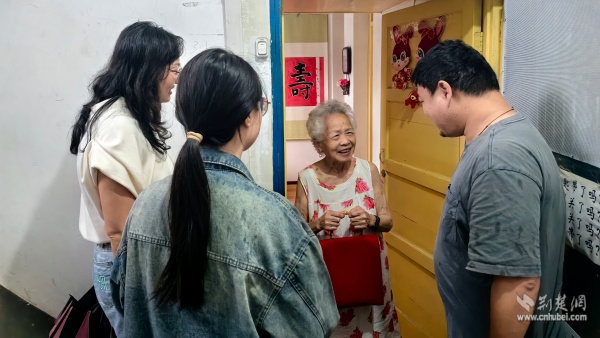 社區(qū)工作者與青年志愿者為“鶴耋安”高齡獨居老人送去節(jié)日關(guān)懷。