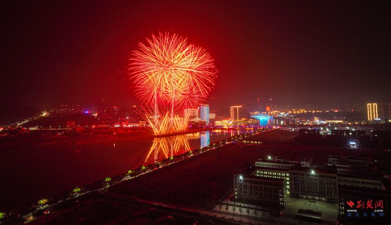 荊楚網(wǎng)(湖北日報(bào)網(wǎng))訊(記者 胡小軍 通訊員 吳滕鈺)10月2日晚,英山縣城區(qū)一河兩岸霓虹閃爍,親水步道上鮮艷的國旗迎風(fēng)飄揚(yáng),處處洋溢著喜慶熱烈的節(jié)日氣氛。大別山文學(xué)廣場周圍成為縣城熱度最高的地區(qū),上萬名市民、游客從四面八方匯集于此,大家翹首以盼,提前拿出手機(jī),選好角度,用鏡頭定格即將開始的視覺盛宴。