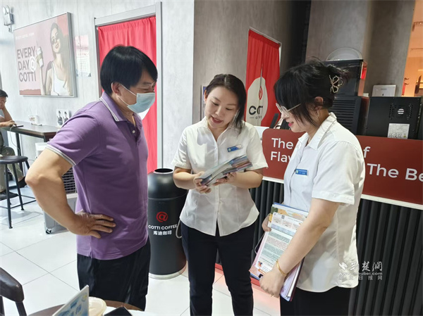 工作人員上門對(duì)商戶做政策宣傳。 通訊員供圖