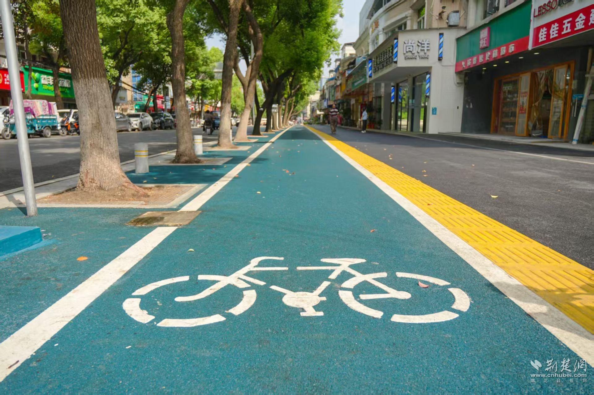 4700平方米舊地磚全部拆除后,施工隊(duì)鋪上彩色瀝青——人行道黑色、非機(jī)動(dòng)車(chē)道酞青藍(lán),兩種顏色通過(guò)白色標(biāo)線(xiàn)清晰分隔。緊挨著白色標(biāo)線(xiàn)的是亮黃色盲道,在施工中摒棄傳統(tǒng)磚材,創(chuàng)新采用無(wú)機(jī)高強(qiáng)聚合材料,現(xiàn)澆即用,有效減少施工對(duì)行人的影響,實(shí)現(xiàn)降本增效。此外,針對(duì)沿街商戶(hù)門(mén)前自建臺(tái)子高低不一、材料雜亂問(wèn)題,采用花崗巖磚統(tǒng)一鋪成1.2米寬的臺(tái)面,與瀝青路面無(wú)縫對(duì)接,更平整美觀(guān)了。