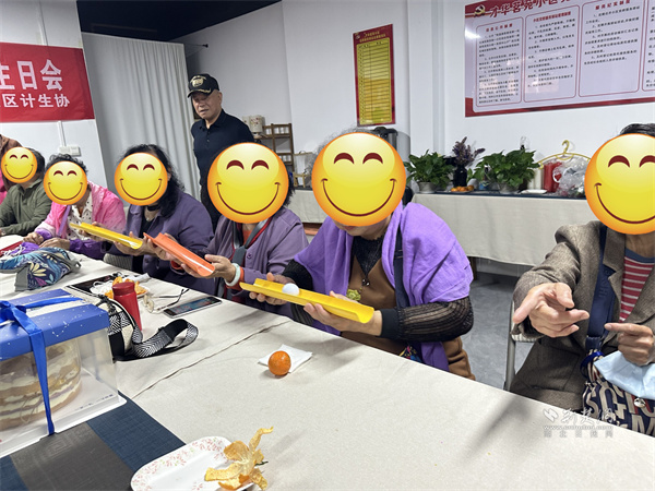 互動(dòng)游戲后,生日蛋糕緩緩?fù)苼?lái),全場(chǎng)人員齊聲高唱《生日快樂(lè)歌》。長(zhǎng)者們圍坐在一起,閉眼許愿,共同吹滅蠟燭,隨后開(kāi)心地分享著甜蜜的蛋糕,每一口都飽含著社區(qū)的關(guān)懷與鄰里間的情誼。