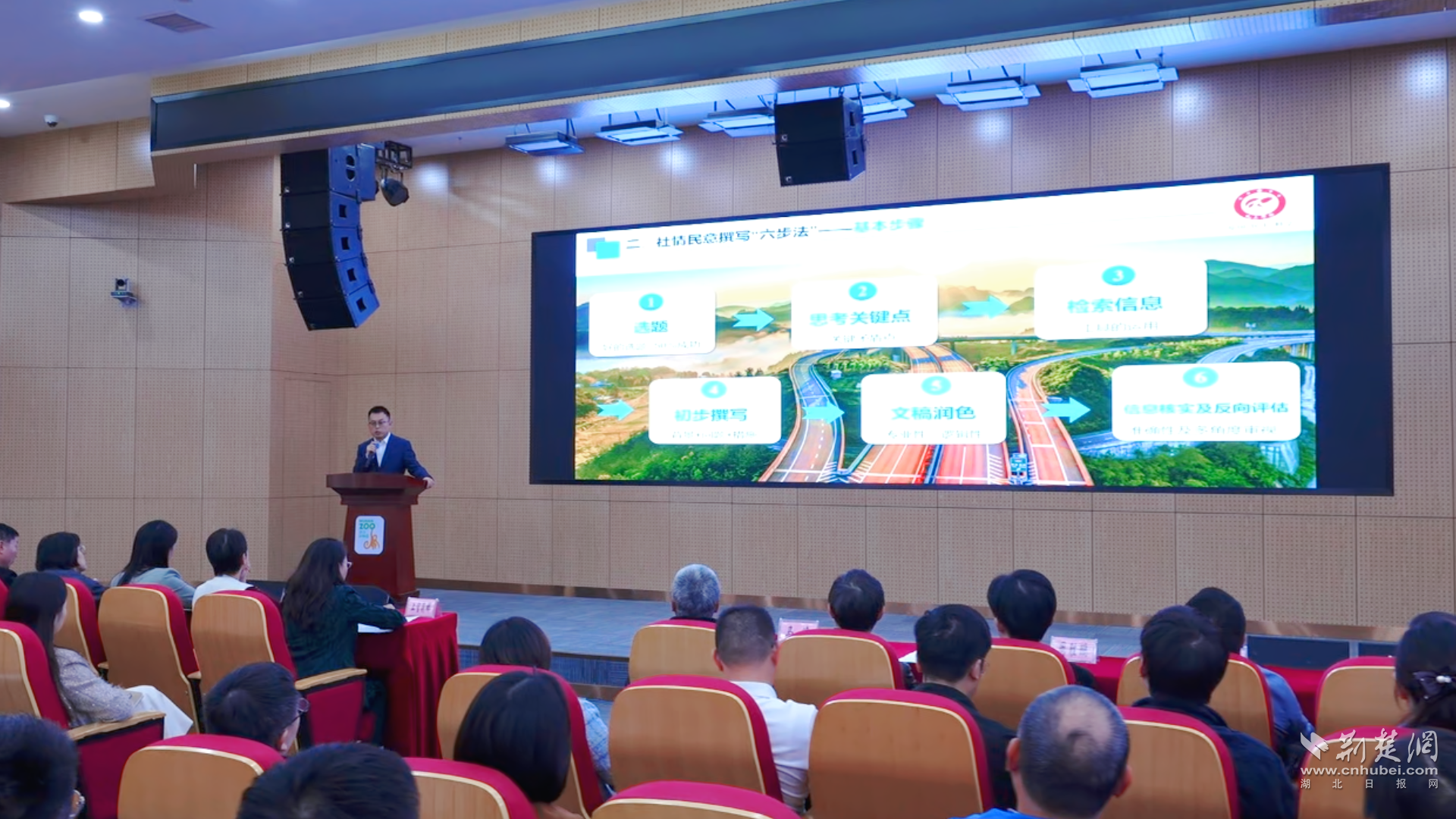 郝宇萌以《如何撰寫高質(zhì)量社情民意、提案》為題分享經(jīng)驗。通訊員供圖