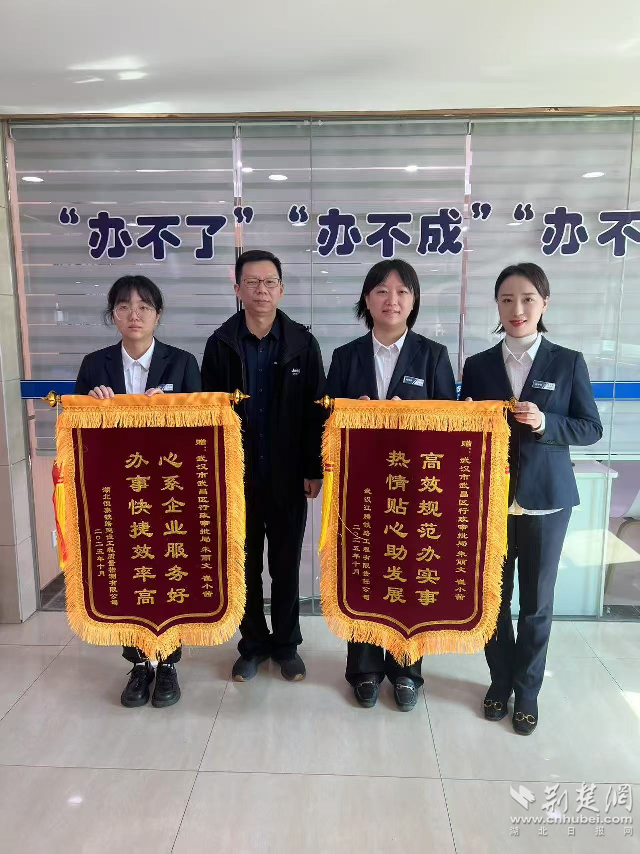 荊楚網(wǎng)(湖北日報網(wǎng))訊(記者 李燕 通訊員 李永波 王金丹)10月24日,中國鐵路武漢局集團旗下湖北恒泰鐵路建設(shè)工程質(zhì)量檢測有限公司、武漢江騰鐵路工程有限責任公司,順利辦結(jié)業(yè)務(wù)變更手續(xù)后,經(jīng)辦人董先生專程送來2面錦旗,向武昌區(qū)行政審批局工作人員表達謝意。