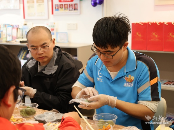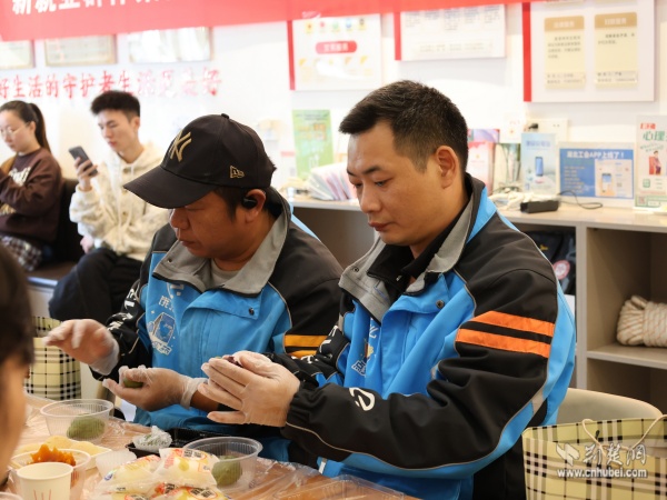 在制作青團(tuán)時(shí),現(xiàn)場(chǎng)同步開(kāi)展“黃鶴家人茶話會(huì)”,搭建起代際對(duì)話的橋梁?;ǖ躺鐓^(qū)紫陽(yáng)之星小區(qū)黨支部書(shū)記金文芳講述了小區(qū)變遷故事,傳遞長(zhǎng)者對(duì)騎手們的關(guān)懷;新就業(yè)群體入黨積極分子樂(lè)倩倩則分享了送餐途中幫扶孤寡老人的暖心經(jīng)歷。兩代人的真誠(chéng)交流深化了情感共鳴,現(xiàn)場(chǎng)洋溢著家人般的溫暖氛圍。